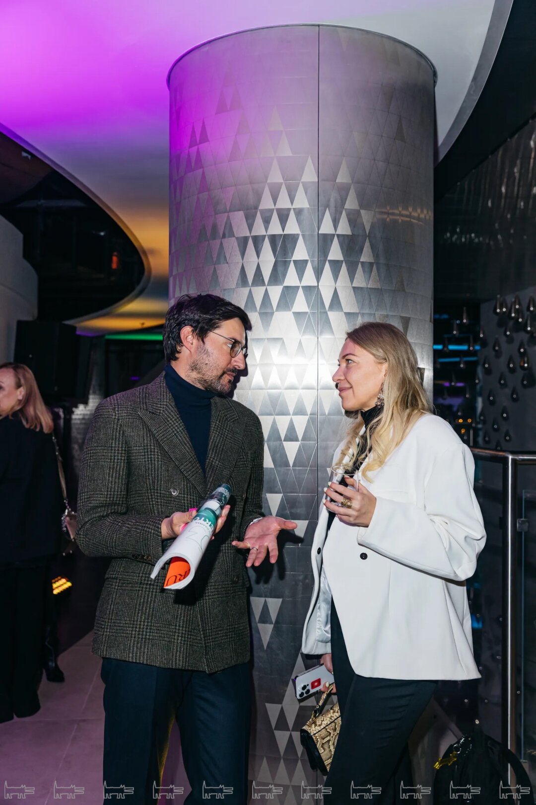 Визуальной доминантой вечера стала первая обложка выпуска арт-дропа. По ее мотивам гостям показали инсталляцию «Абсолют» от студии инновационного медиа дизайна и главных по цифровому искусству в Петербурге ILLUMINARIUM3000 в коллаборации с мультидисциплинарной художницей Кристиной Сидоровой и на музыку Ильи Сидорова.