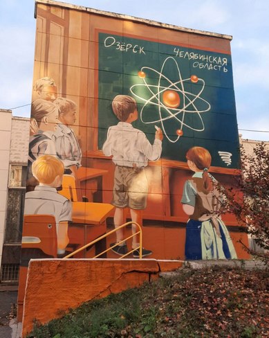– В этом годумы богаты на юбилеи. Мы празднуем 80 лет атомной промышленности, 80 лет нашему городу и 80 лет Великой Победы. Отсюда символика мурала этого года. Для него мы выбрали кинотеатр «Октябрь», чтобы он перекликался с тем муралом, который был выполнен на торцевой стене здания Управления связи ФГУП «ПО «Маяк» по ул. Октябрьской. Это продолжение темы развития атомной промышленности.