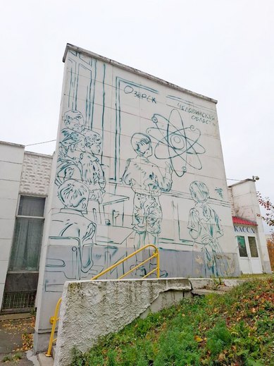 Мурал на здании кинотеатра «Октябрь» был выполнен творческой командой, в которую вошли: художник, уроженец Озерска Николай Касаткин и автор эскиза Савинова Кристина, помощник куратора областного граффити фестиваля "Наш Mural".