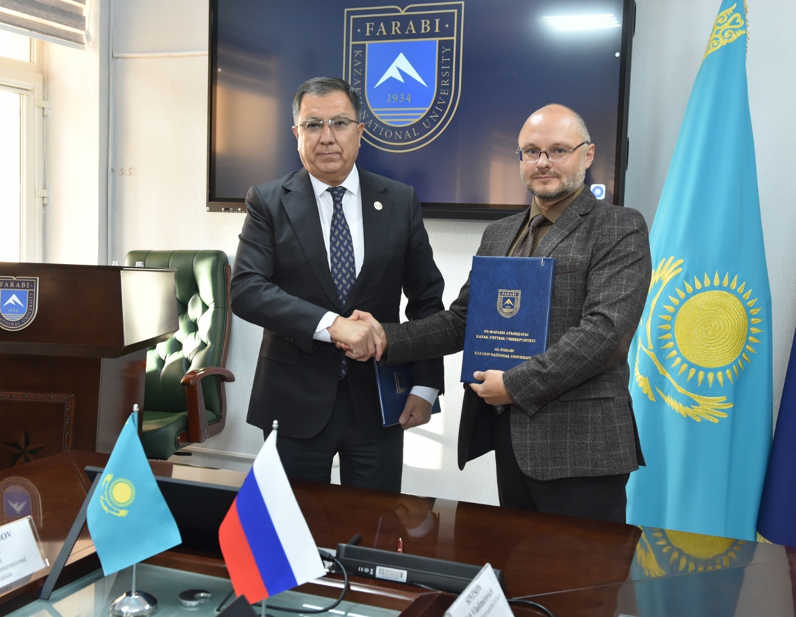 Второй день нахождения делегации ПГУ в Казахстане был посвящен визиту в Казахский национальный университет имени аль-Фараби. Председатель Правления — ректор КазНУ Жансеит Туймебаев возглавил встречу с представителями ПГУ. Участники обсудили механизмы реализации совместной деятельности, о чем был подписан Меморандум о сотрудничестве. Гости из Пензы посетили Музей университета, также прошла дискуссия с представителями юридического факультета по вопросам юридического образования и науки наших союзных государств.