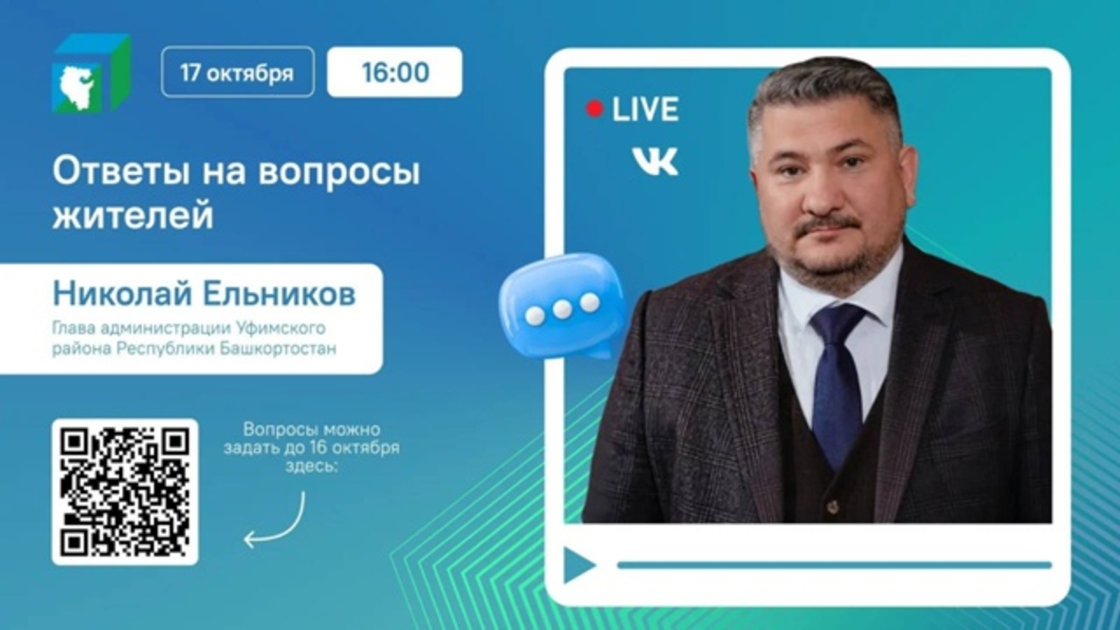 17 октября глава администрации Уфимского района Николай Ельников проведет прямой эфир для ответов на вопросы жителей муниципального образования. В ходе онлайн-встречи планируется обсудить актуальные темы, связанные с ремонтом автомобильных дорог, благоустройством территорий, развитием дорожной инфраструктуры и организацией уличного освещения.