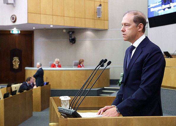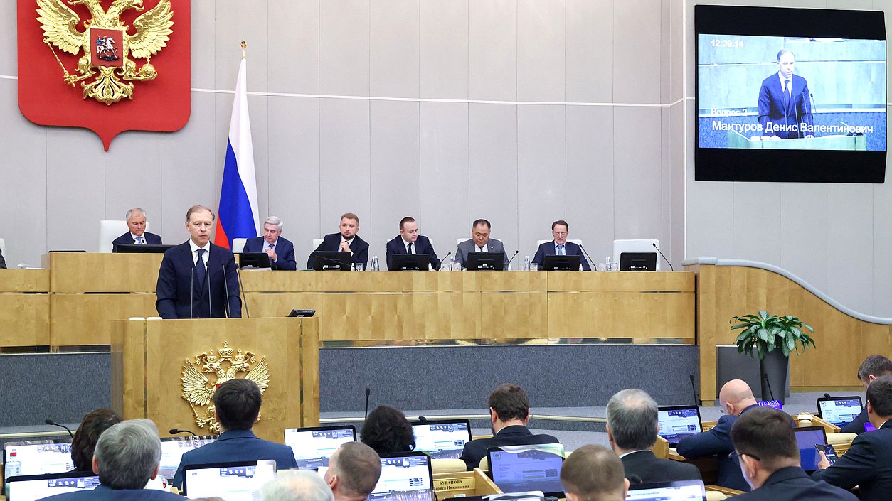 В ходе обсуждения с докладами выступили Первый заместитель Председателя Правительства Денис Мантуров, Министр промышленности и торговли Антон Алиханов, Министр экономического развития РФ Максим Решетников, председатели профильных комитетов. Представители политических фракций задали свои вопросы.