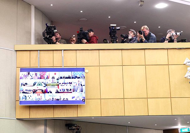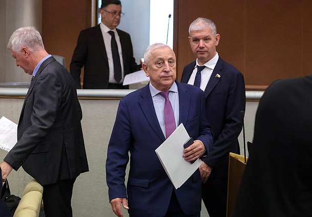 Председатель Государственной Думы Вячеслав Володин, Первый заместитель Председателя Государственной Думы Иван Мельников и Председатель Комитета по контролю Олег Морозов
