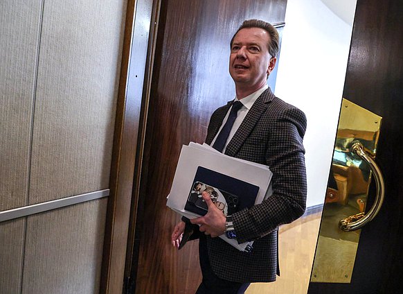 Член Комитета по безопасности и противодействию коррупции Роман Водянов и Первый заместитель Председателя Комитета по делам СНГ, евразийской интеграции и связям с соотечественниками Константин Затулин