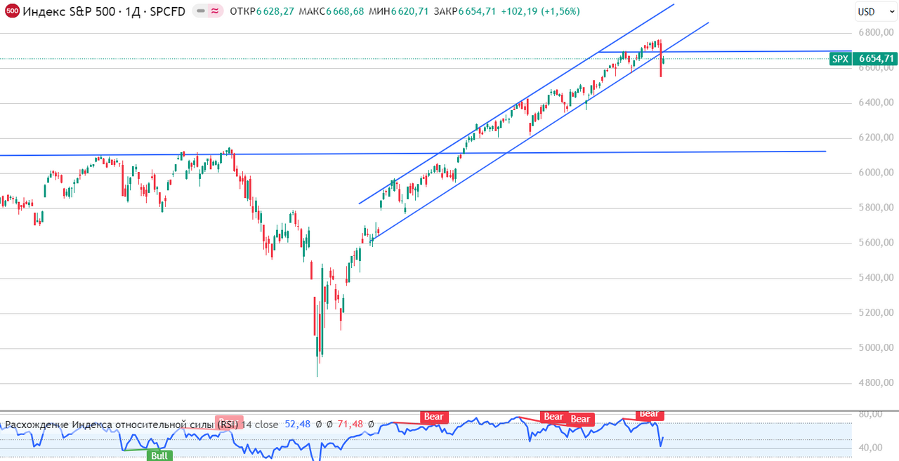 В результате, после вчерашнего оптимизма, фьючерс на S&P 500 сегодня снова пошли вниз — рынки остаются волатильными, и дальнейшая динамика будет во многом зависеть от того, продолжат ли стороны обмен резкими заявлениями или перейдут к реальным переговорам.