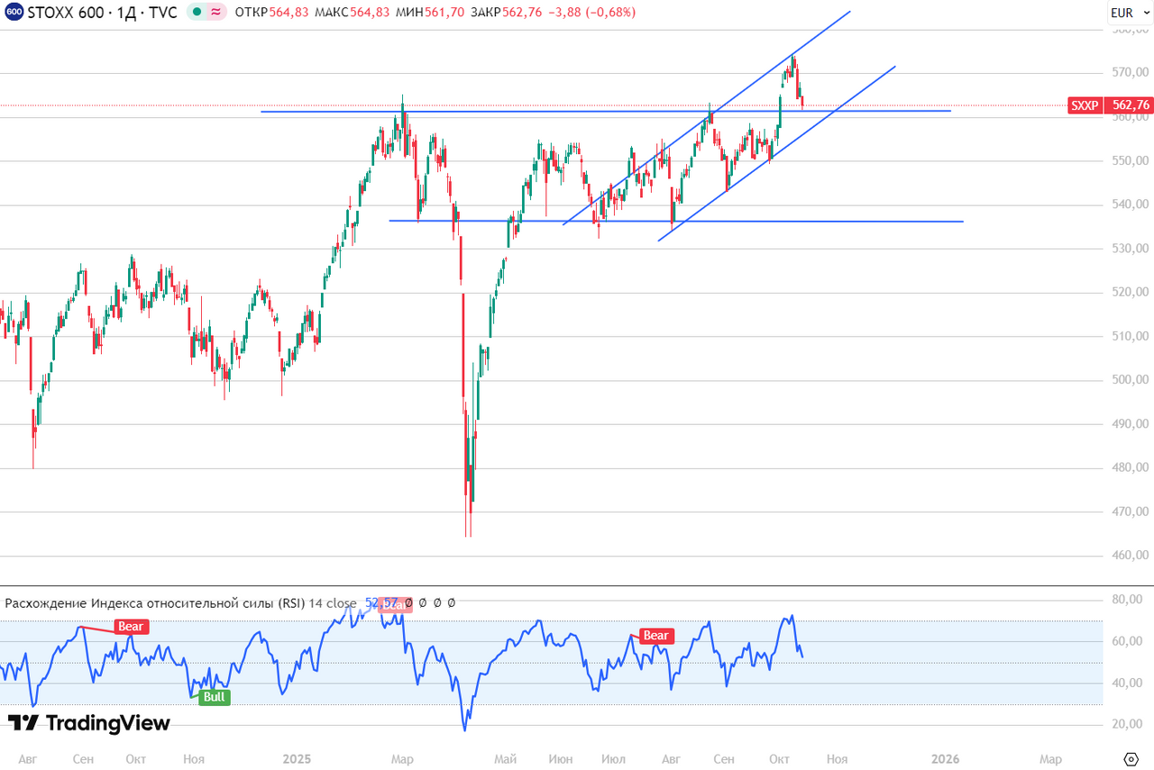 Во вторник, 14 октября, на мировых рынках наблюдается негативная динамика из-за продолжения обострения торгового конфликта США и КНР. Вчера американский рынок заметно отыграл пятничное падение: крупные индексы закрылись в плюсе (S&P 500, Nasdaq и Dow Jones показали отскок) после смягчения риторики со стороны Вашингтона. Катализатором стала серия заявлений — в том числе сам Трамп, который в более мягких формулировках дал понять, что «не всё потеряно» и что вопрос с Китаем при желании можно урегулировать, а также слова Скота Бессента о возможности продолжения переговоров и встреч на высоком уровне — инвесторы это восприняли как сигнал к снижению политического риска и перешли в покупки. Однако уже позже Пекин ответил жёстко: в Министерстве торговли и МИД КНР заявили, что, если США хотят «бороться», Китай «будет бороться до конца», при этом оставив возможность для переговоров открытой — такая риторика вернула напряжённость на рынок.