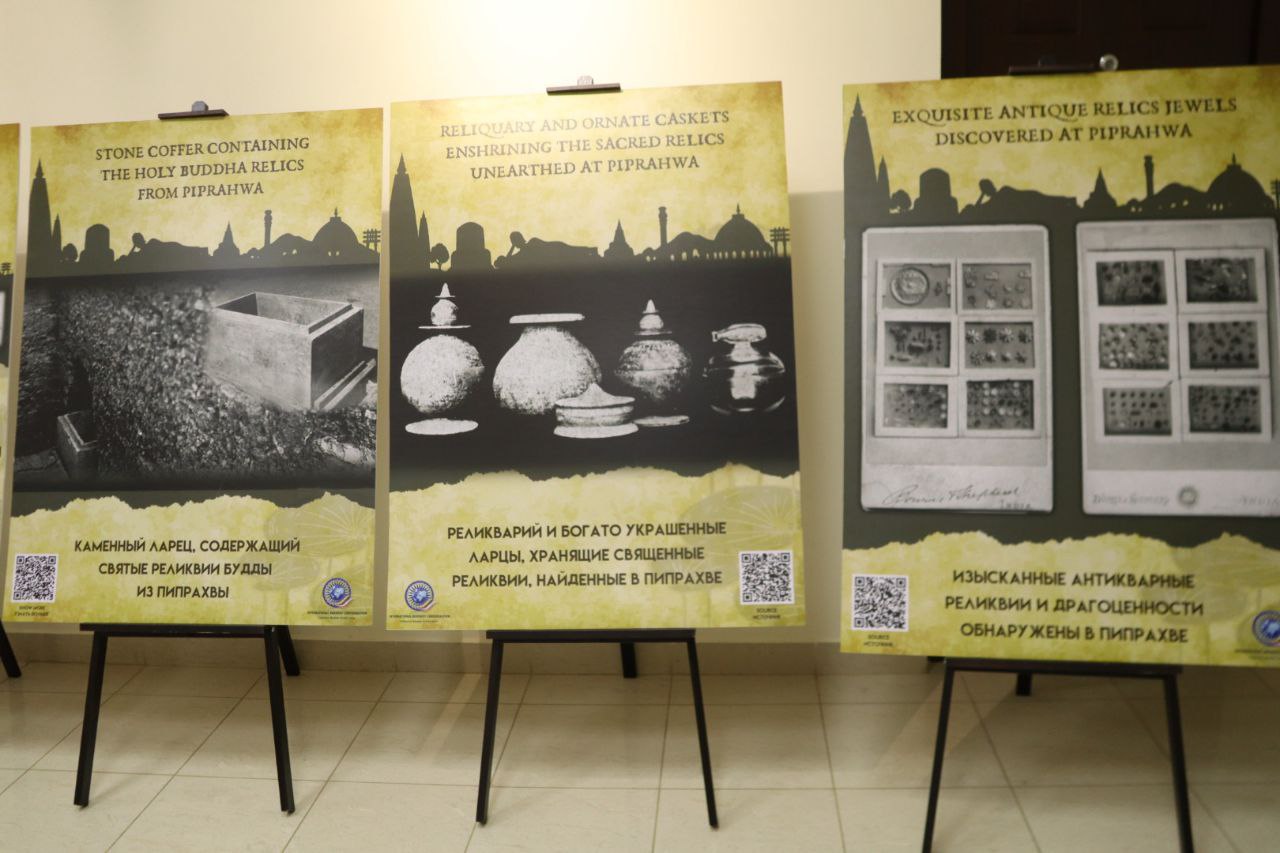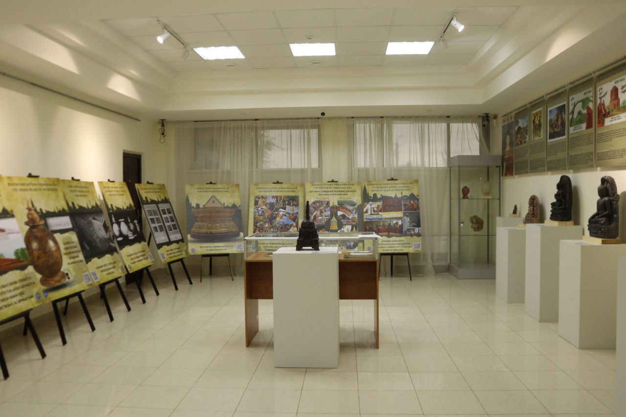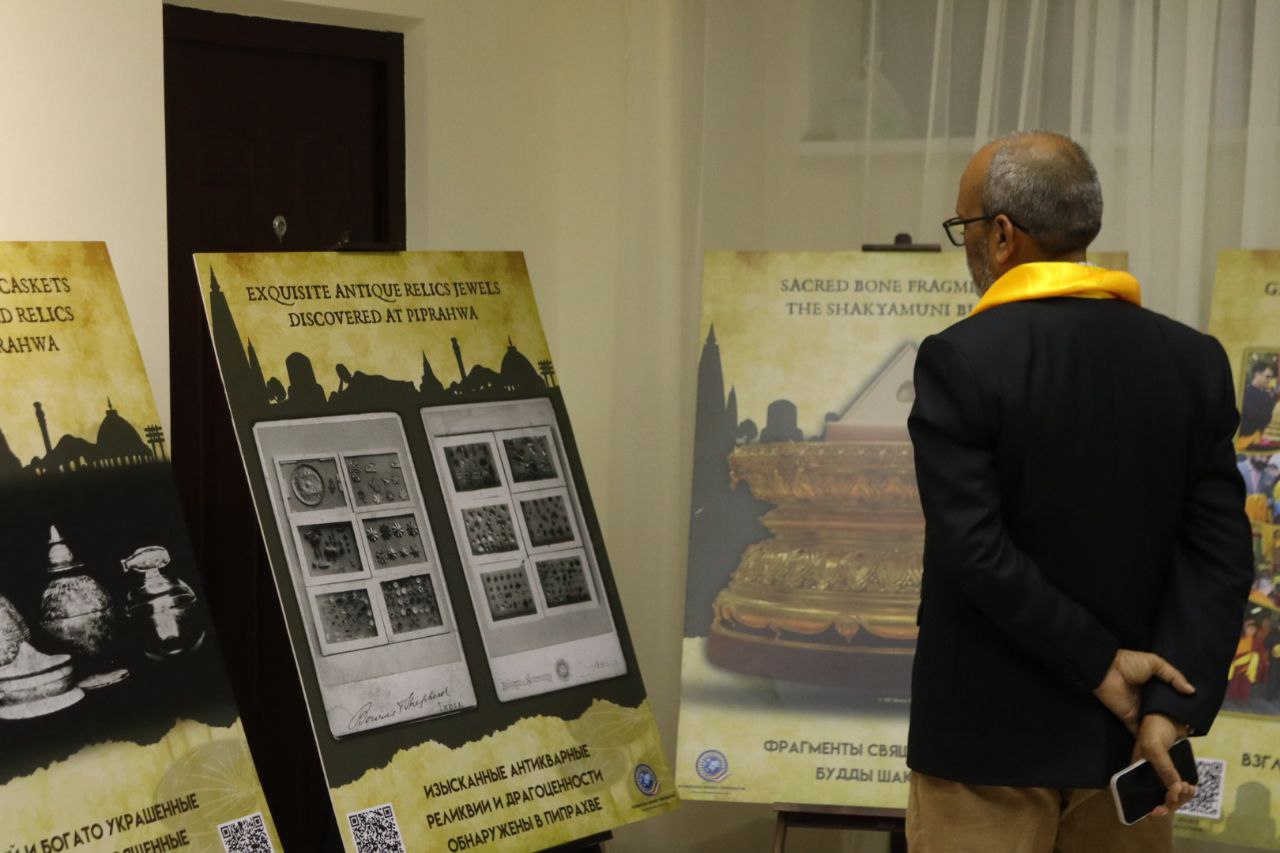 Выставка о священном наследии Шакьев включает 3D-копии 14 предметов из коллекции Национального музея Индии, включая каменные статуэтки и фрагменты барельефов II–XI веков нашей эры. Артефакты, относящиеся к эпохам Кушанов, Палов, Сунгов, Сатаваханов и Гуптов, демонстрируют ключевые моменты жизни Будды: от его рождения и просветления до первой проповеди и ухода в Махапаринирвану. Посетители могут познакомиться с картой города Пипрахвы, отождествляемого с древним городом Капилавасту (столицей рода Шакья), погрузиться в духовную атмосферу через изображение Махапаринирваны и тексты из Махапариниббана сутты, проследить историю раскопок и обнаружения древних реликвий через работы Уильяма Пеппе (1896-1898 гг.) и К. М. Шриваставы (1971-1974 гг.), увидеть надпись Брахми, подтверждающую подлинность реликвий, и карту короля Рамы V, отображающую распределение священных останков по буддийским народам. А кроме того, изучить буддийское наследие через индийские и российские почтовые марки, на одной из которых присутствует и храм Калмыкии. Она продолжит свою работу в течение 10 дней.