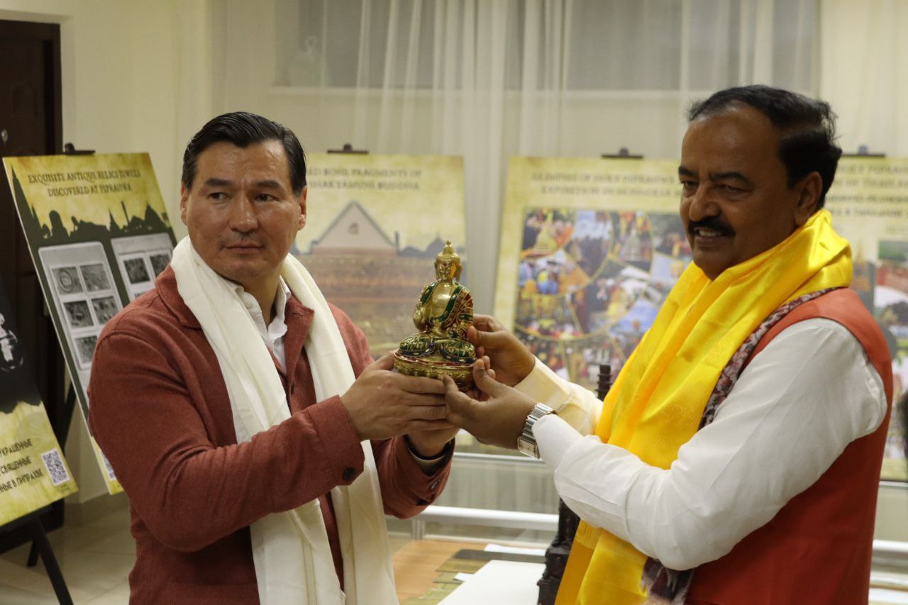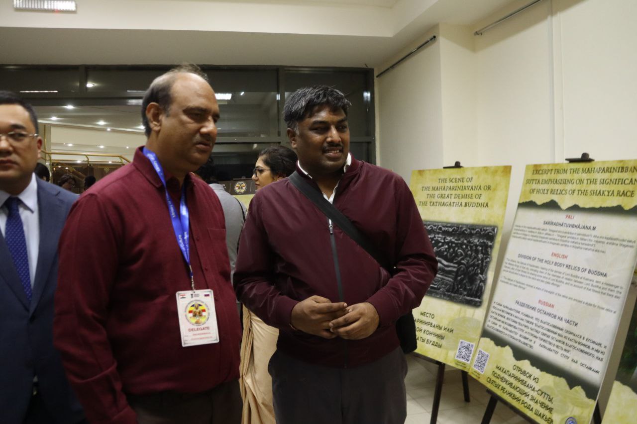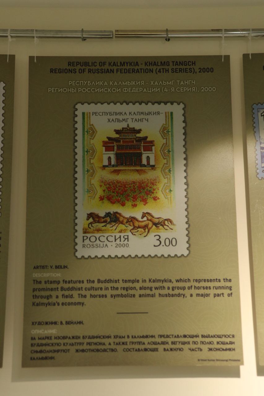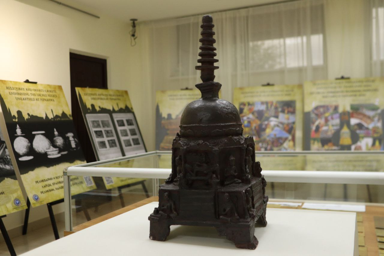 Выставка о священном наследии Шакьев включает 3D-копии 14 предметов из коллекции Национального музея Индии, включая каменные статуэтки и фрагменты барельефов II–XI веков нашей эры. Артефакты, относящиеся к эпохам Кушанов, Палов, Сунгов, Сатаваханов и Гуптов, демонстрируют ключевые моменты жизни Будды: от его рождения и просветления до первой проповеди и ухода в Махапаринирвану. Посетители могут познакомиться с картой города Пипрахвы, отождествляемого с древним городом Капилавасту (столицей рода Шакья), погрузиться в духовную атмосферу через изображение Махапаринирваны и тексты из Махапариниббана сутты, проследить историю раскопок и обнаружения древних реликвий через работы Уильяма Пеппе (1896-1898 гг.) и К. М. Шриваставы (1971-1974 гг.), увидеть надпись Брахми, подтверждающую подлинность реликвий, и карту короля Рамы V, отображающую распределение священных останков по буддийским народам. А кроме того, изучить буддийское наследие через индийские и российские почтовые марки, на одной из которых присутствует и храм Калмыкии. Она продолжит свою работу в течение 10 дней.