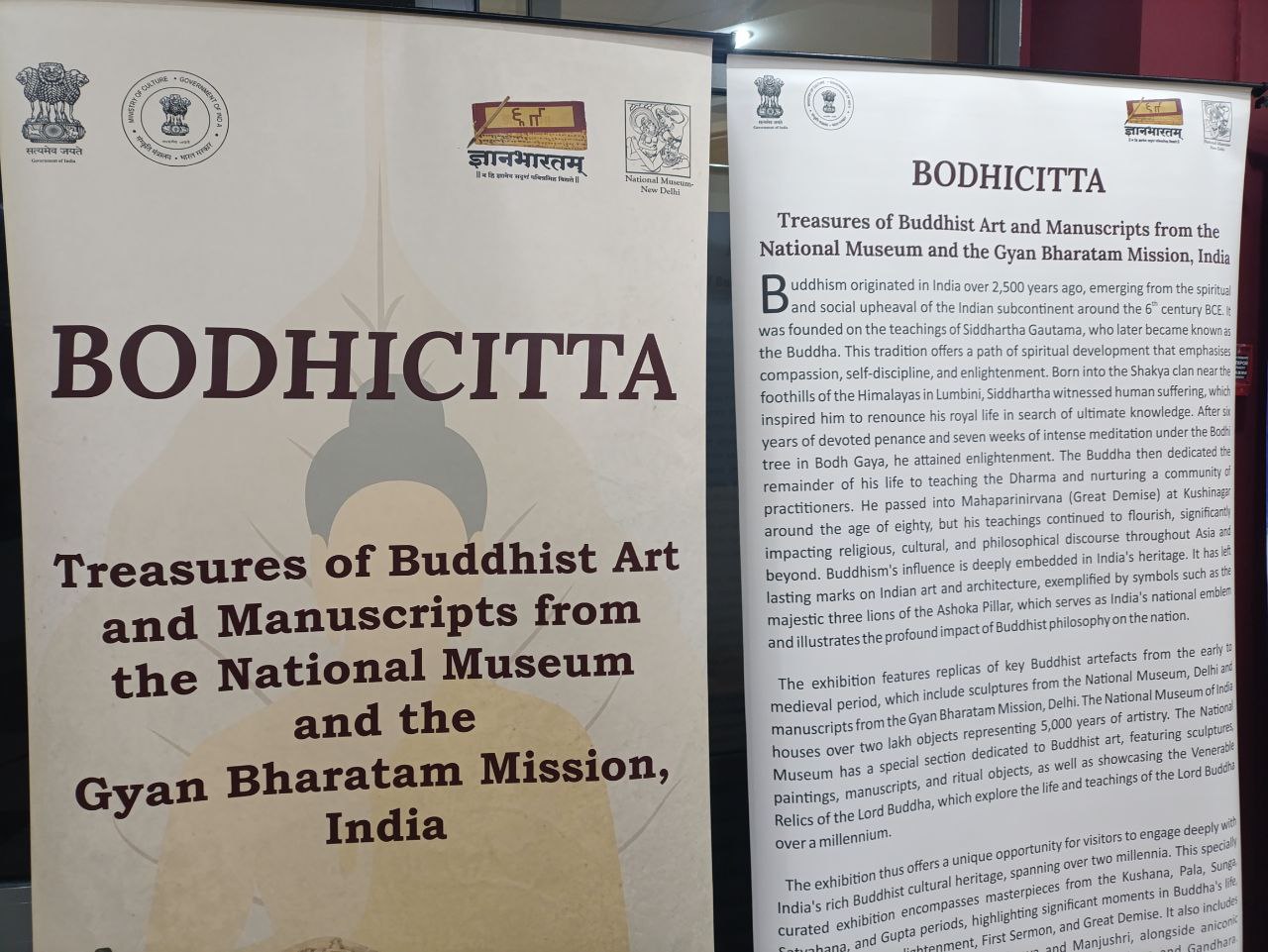 Уже после церемонии перерезания символической ленточки представитель департамента министерства культуры Индии рассказал, что перед калмыцкой публикой предстала их работа последних четырех месяцев. В стремлении показать различные культурные аспекты, индийская сторона представила выставку марок, рукописей, выступающих хранилищем древнего наследия цивилизаций, и попыталась объединить их с артефактами с отражением этапов жизни Будды.