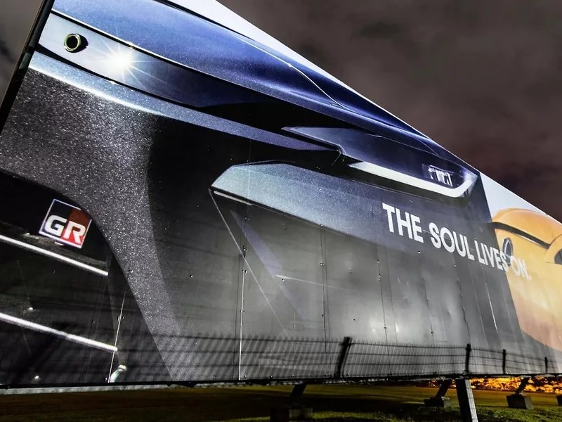 Хотя официальные изображения пока не опубликованы, первые тизеры дают представление о внешности автомобиля. На рекламном баннере в первом повороте японской гоночной трассы «Фудзи» (GT Corner) были изображены фары и воздухозаборник с шильдиком GR, а рядом — классическая Toyota 2000GT 1967 года и Lexus LFA 2010 года. Это указывает на преемственность нового суперкара с историей бренда.