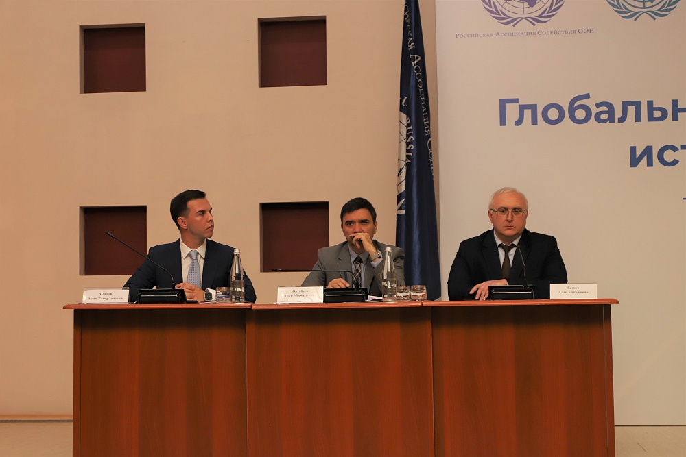 Историк Борис Есиев в своем докладе назвал ООН важнейшей организацией для сохранения мира, а представитель МИД Багир Мамиев рассказал о российской роли в развитии многосторонней дипломатии.