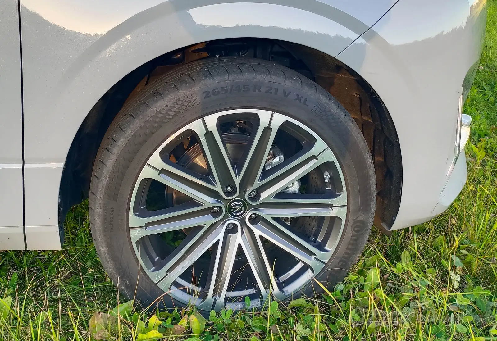 Добавляют внешней стати автомобилю и 21-дюймовые колёса, обутые в качественную низкопрофильную резину Continental (265/45R21), в чём тоже проскакивают еле заметные параллели с Porsche. Не менее добротно выглядят и оригинальные колёсные диски.