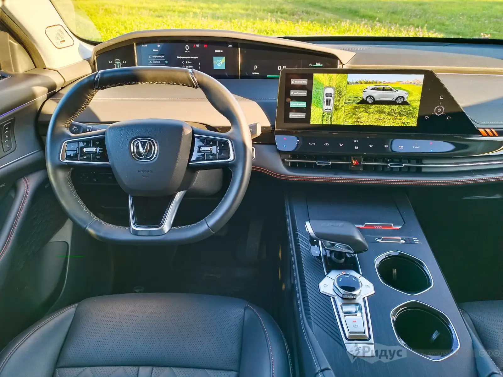 Как и положено автомобилям данного класса, Changan UNI-K буквально обвешан видеокамерами. Приятной фишечкой на этом фоне является отдельный экран в правой части приборной панели, куда выводится картинка с задней камеры, что можно рассматривать как альтернативу салонному зеркалу заднего вида. Качество изображения достаточно хорошее даже в случае непогоды за бортом.