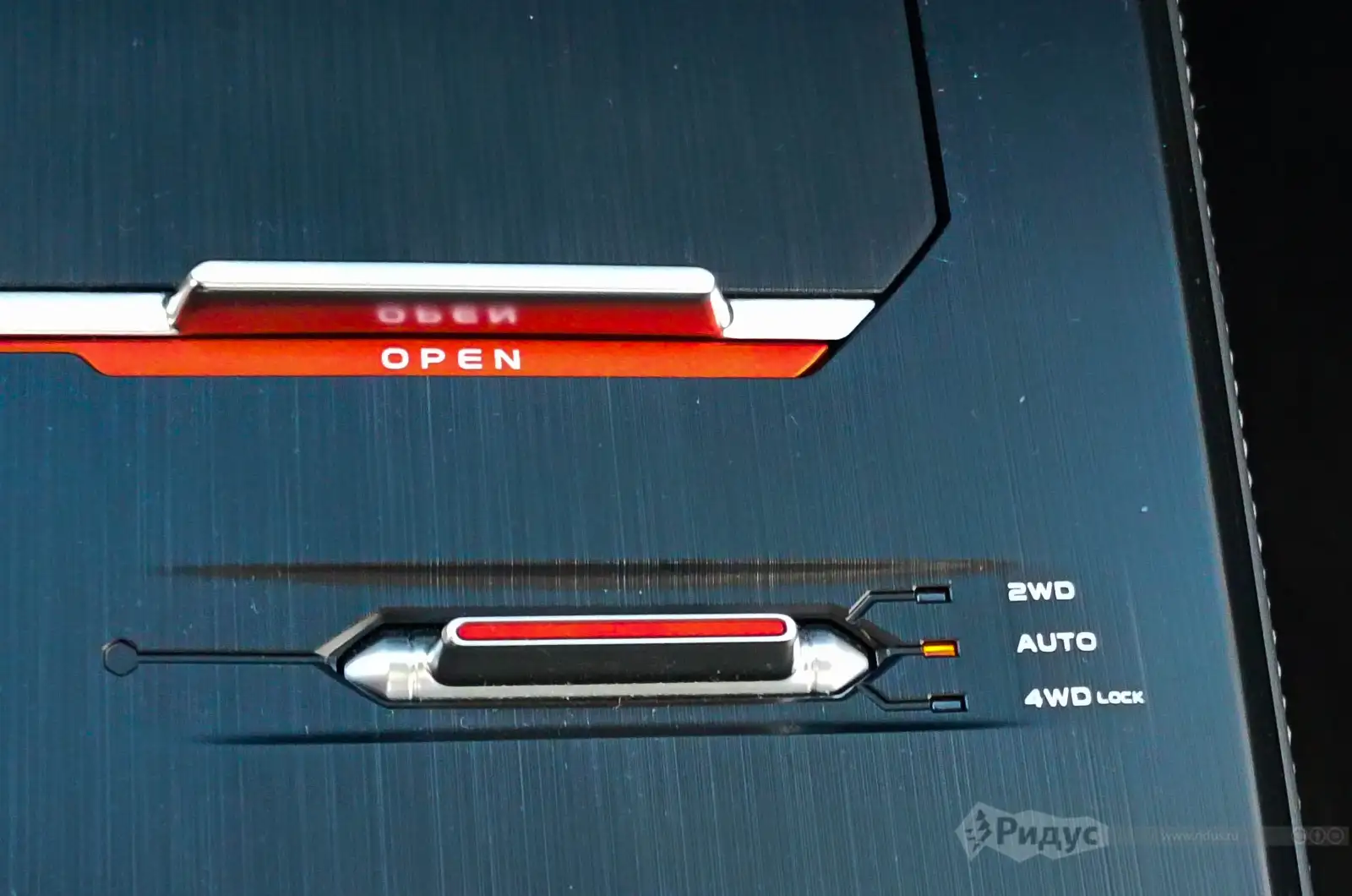 Центральная консоль типа «мост» оформлена сдержано и лаконично в канонах всё того же хайтека, хотя качество пластика могло быть и получше. Набор органов управления на консоли стандартный, кроме переключателя режимов полного привода. Девайс достаточно удобный хотя бы потому, что выполнен в качестве физического переключателя, а не сенсора на панели управления. Более подробно о нем и о полном приводе расскажем чуть позже.
