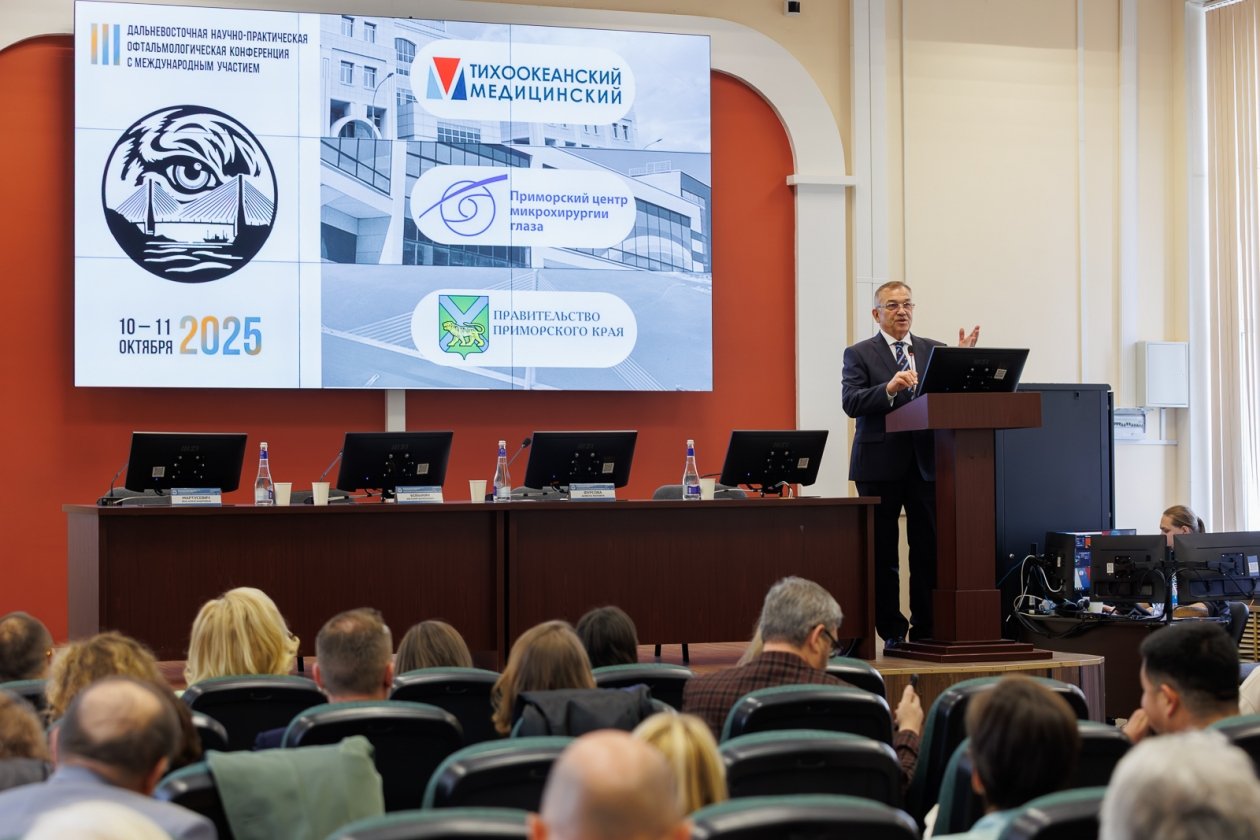 Непосредственно в ходе открытия конференции 10 октября ректор Тихоокеанского государственного медицинского университета, обращаясь к участникам мероприятия, поблагодарил врачей, представляющих ведущие центры отечественной офтальмологии, за участие в конференции, а также отметил большой вклад в организацию этого важного события кафедры офтальмологии и оториноларингологии Тихоокеанского Медицинского.