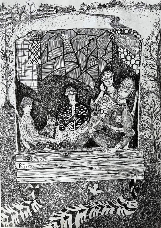Ляхова Ульяна с работой «Солдаты едут на фронт» (номинация «Графика», возрастная группа 13-15 лет).