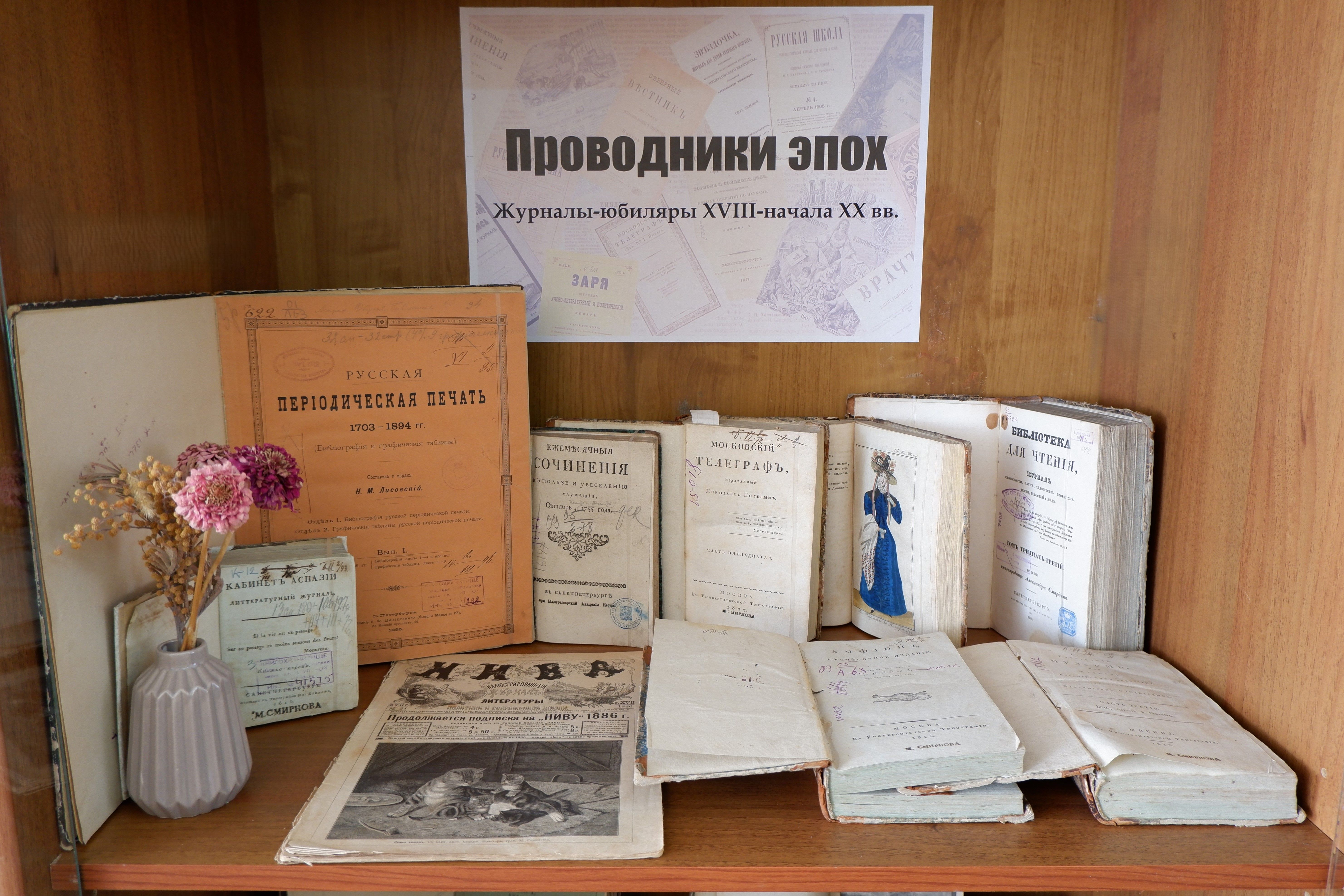В отделе редких книг и книжных памятников Астраханской научной библиотеки открылась выставка «Проводники эпох». «Главными героями» экспозиции стали отечественные журналы середины XVIII — начала XX века, отмечающие в 2025 году юбилейные даты. На выставке представлены периодические издания разной направленности.