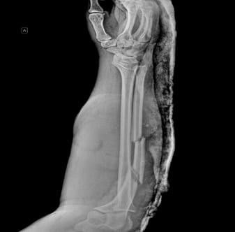 Пациент с тяжелой травмой предплечья обширным дефектом мягких тканей и переломом локтевой кости попал в ВГКБ №2 им. К.В. Федяевского.
