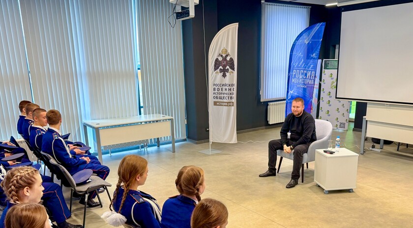 На базе мультимедийного исторического парка «Россия — Моя история» в Луганске спикер парламента встретился с учащимися класса Российского военно-исторического общества Луганского экономико-правового лицея-интерната имени героев «Молодой гвардии». Собравшиеся обсудили важность понимания современных исторических процессов и необходимость труда на благо Родины.