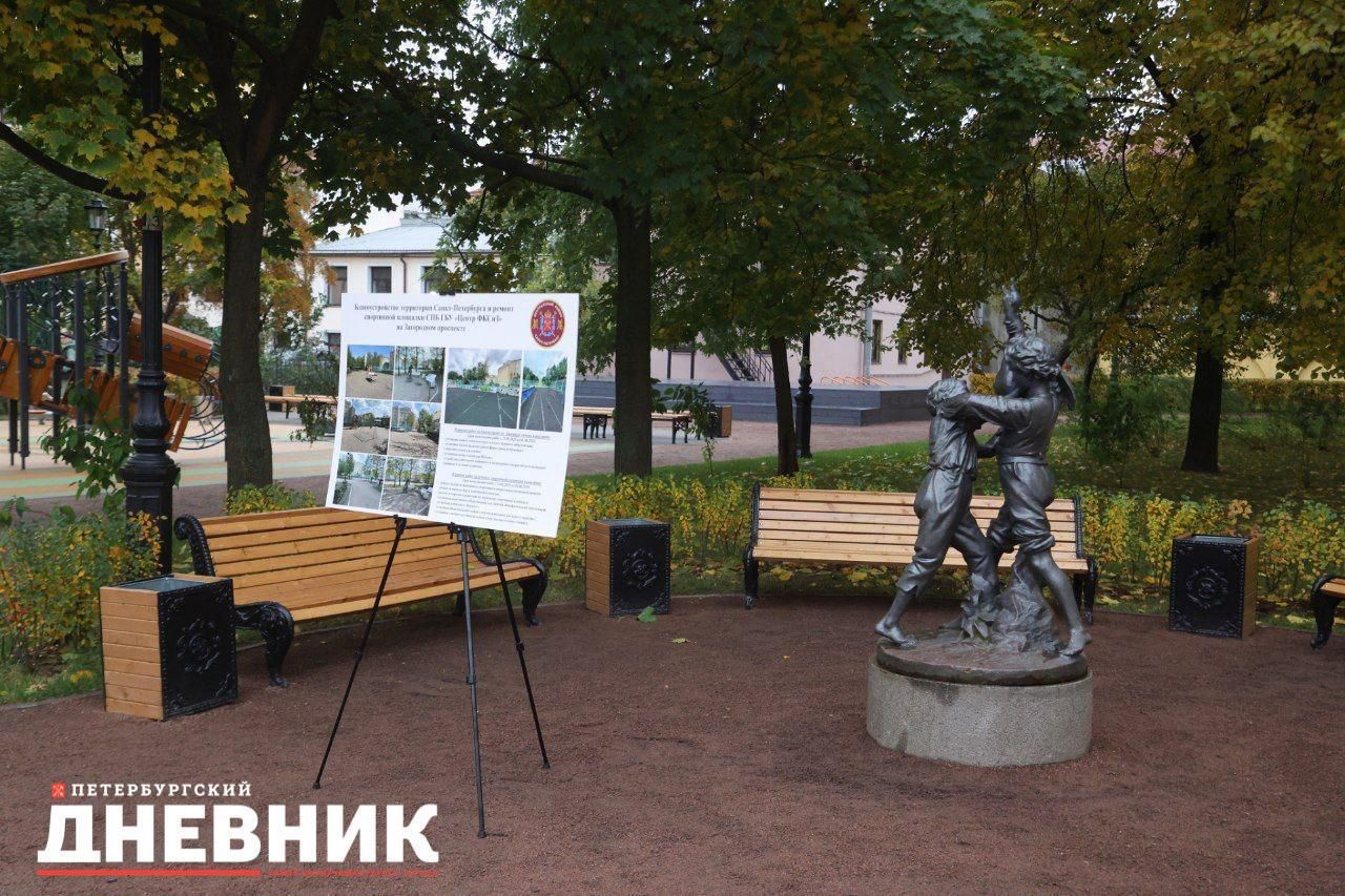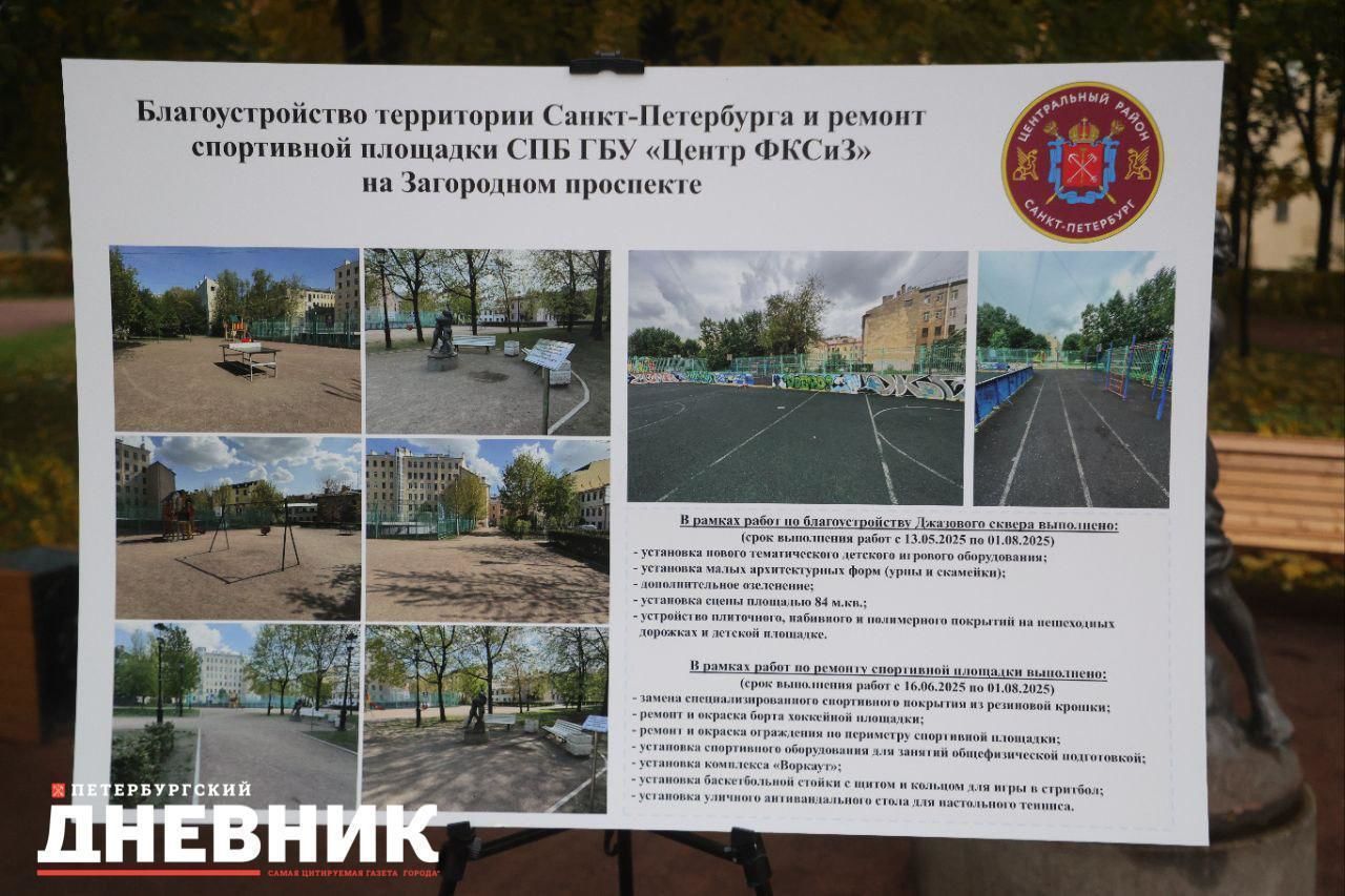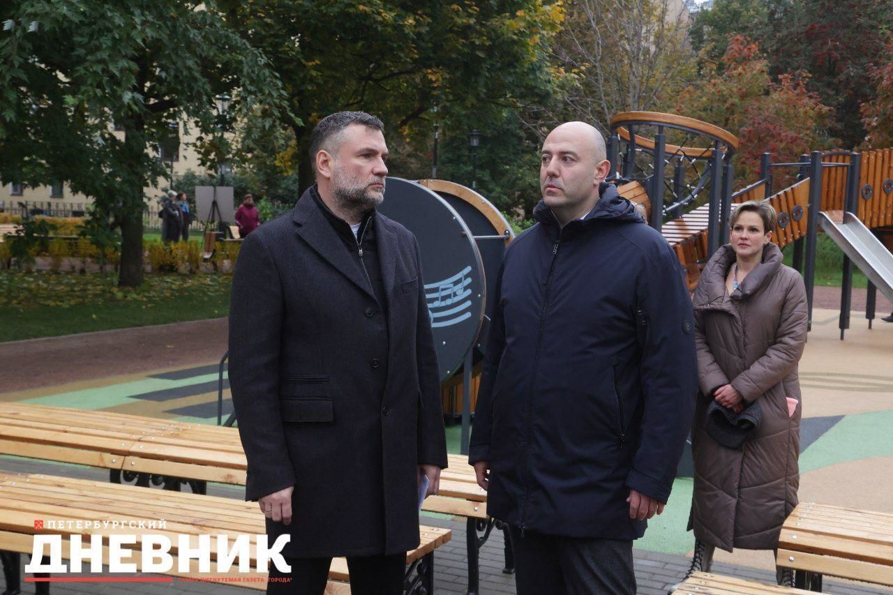 Вице-губернатор Евгений Разумишкин осмотрел два благоустроенных пространства в Центральном районе – Джазовый сквер на Загородном проспекте и сквер Галины Старовойтовой на Суворовском.