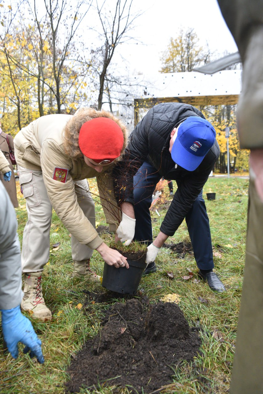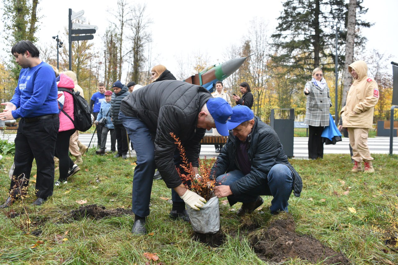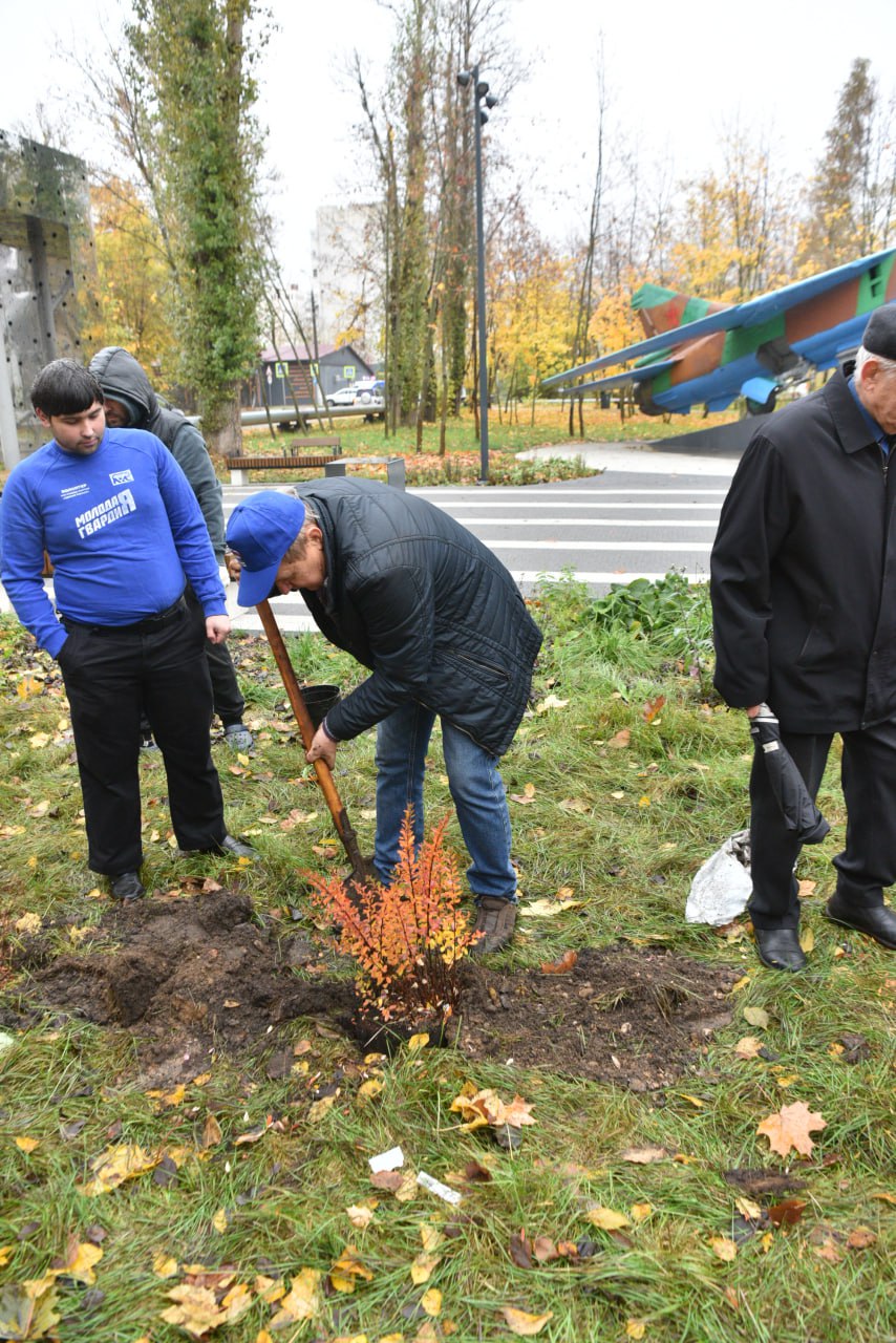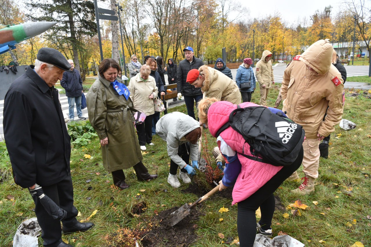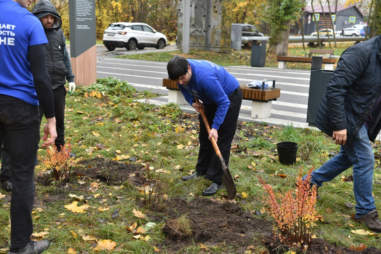К высадке кустарников присоединились депутат Мособлдумы Тарас Ефимов, депутат горсовета Балашихи Светлана Тананова, молодогвардейцы и юнармейцы, а также представители ветеранской организации микрорайона Заря.