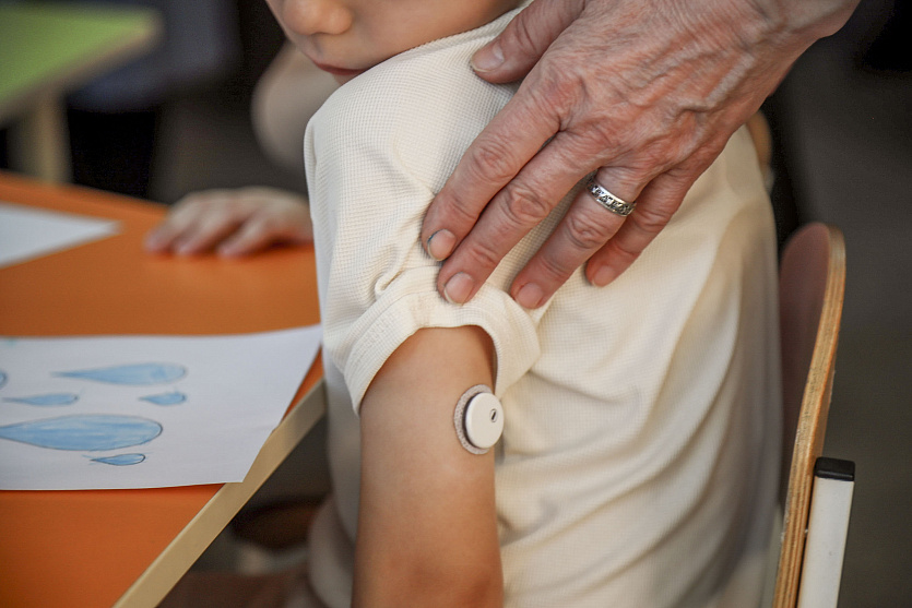«Другие детсады опасались брать такого ребёнка, потому что такая ответственность большая. Здесь согласились взять Рому. Он с радостью пошёл детский сад», — рассказывают родители ребёнка с сахарным диабетом Алексей и Александра Ильины. У Ромы на предплечье установлен специальный датчик. Он постоянно показывает уровень глюкозы в крови.