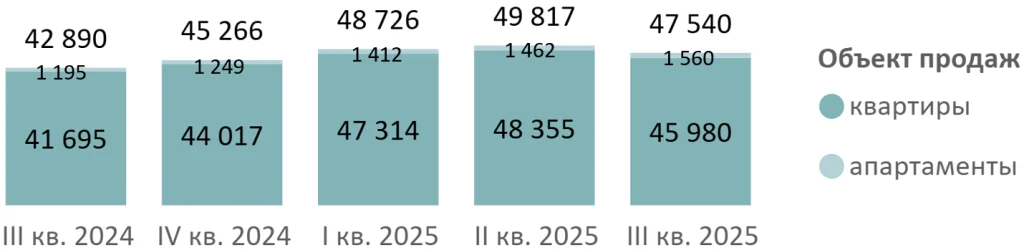 «В III квартале 2025 года на рынке новостроек Московской области экспонировалось 47,5 тыс. лотов (-5% за квартал, +11% за год) в 234 проектах, где 46 тыс. это квартиры (-5% за квартал, +10% за год) и 1,6 тыс. апартаменты (+7% за квартал, +31% за год). Кроме того, стартовало четыре новых проекта: Апрелевка Клаб (Наро-Фоминский г.о.), Лесная Коллекция (Химки), Элемент (Дубна), Базаева 11 (Волоколамский г.о.)», - рассказали эксперты.