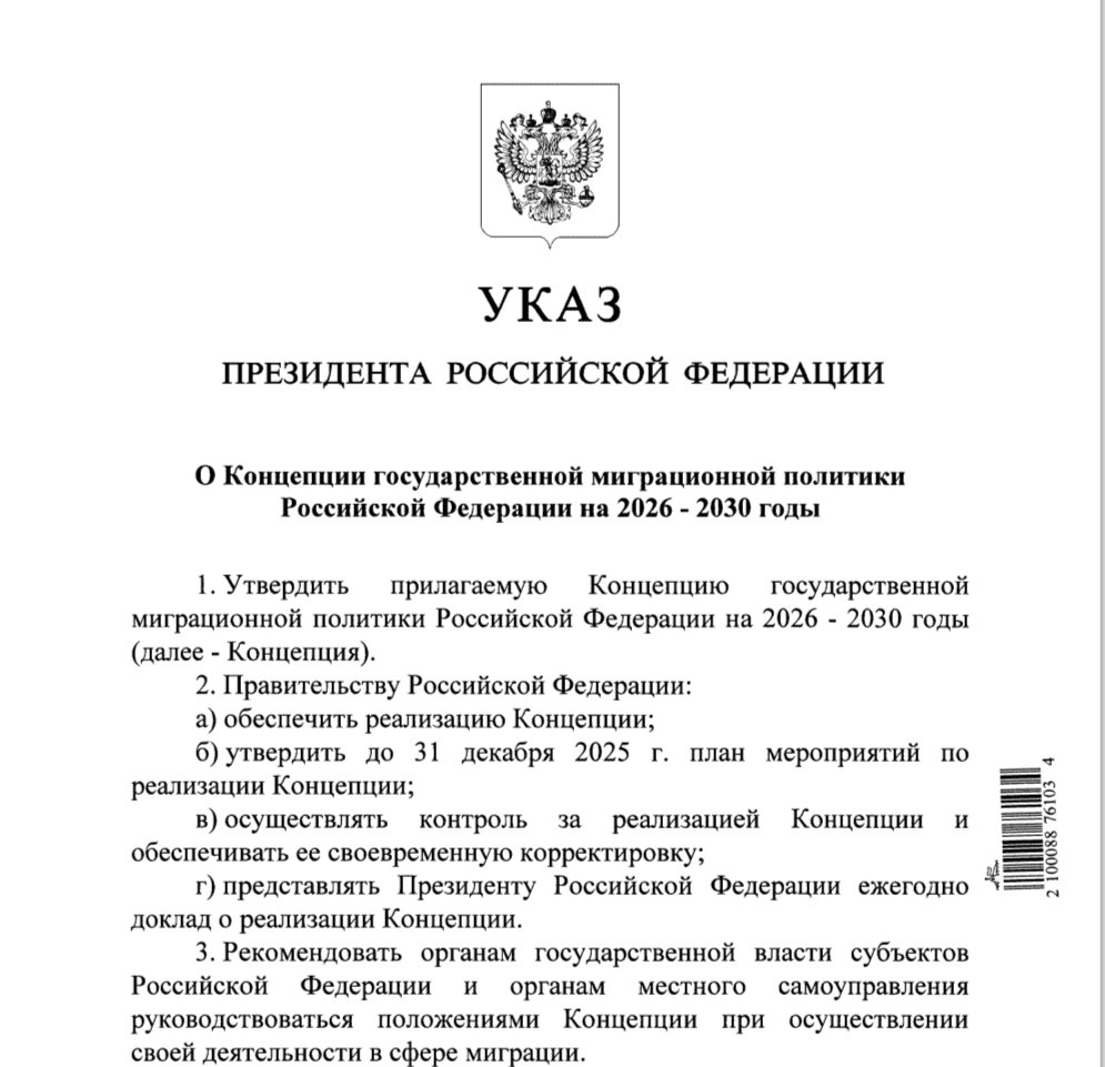 Владимир Путин одобрил концепцию миграционной политики, которая определяет стратегию на ближайшие пять лет. Основные цели концепции сосредоточены на уменьшении числа нелегальных мигрантов и снижении преступности, связанной с этой проблемой.