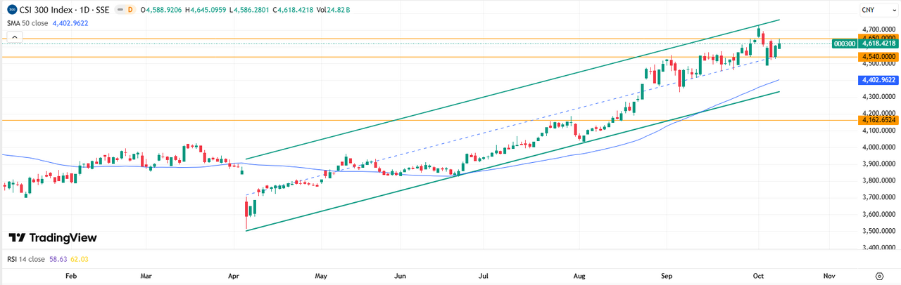В Китае Shanghai Composite подрос на 0,1%, Shenzhen Component снизился на 0,25% под влиянием эскалации торгового конфликта с США. Дональд Трамп подтвердил, что торговая война продолжается, однако Минфин США дал понять, что перемирие может быть продлено, если Китай откажется от новых экспортных ограничений на редкоземельные металлы. На корпоративном фронте технологический сектор в плюсе — акции компаний, связанных с AI и полупроводниками, поддержаны сильной отчетностью TSMC и спросом на «умные» чипы. Индекс CSI 300 подрос на 0,3% до 4620. Инвесторы ждут новых сигналов по экономической политике перед предстоящим пленумом ЦК КПК.