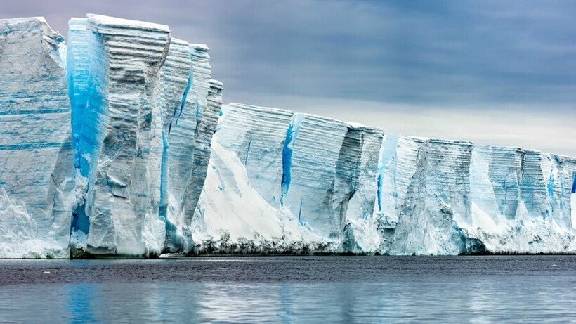 Ледяные пейзажи Антарктиды простираются до самого горизонта белоснежным ковром