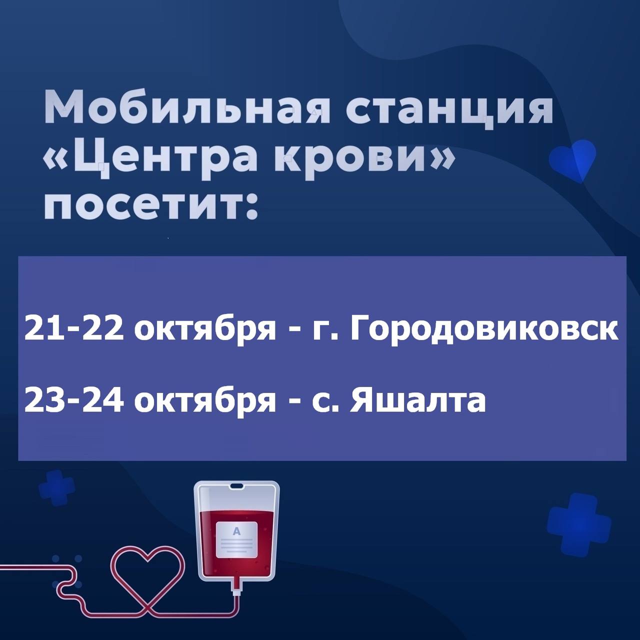 Мобильный пункт Центра крови приглашает жителей Городовиковского и Яшалтинского районов принять участие в выездной донорской акции.