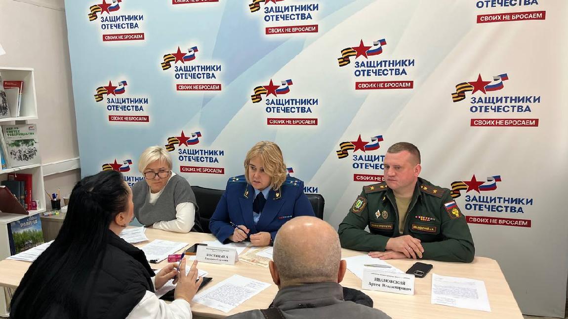 16 октября 2025 г. исполняющий обязанности прокурора Тверской области Екатерина Костицына провела прием граждан совместно с руководителем филиала Государственного фонда поддержки участников специальной военной операции «Защитники Отечества» по Тверской области Ириной Петровой и заместителем военного прокурора Тверского гарнизона Артемом Ивановским.