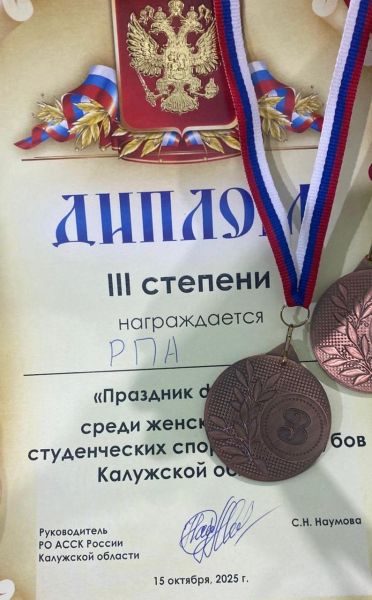 В соревновании приняла участие женская команда студенческого спортивного клуба Калужского института (филиала) ВГУЮ (РПА Минюста России) под руководством преподавателя и тренера Филиппова Дмитрия Владимировича и в упорной борьбе заняла призовое III место.