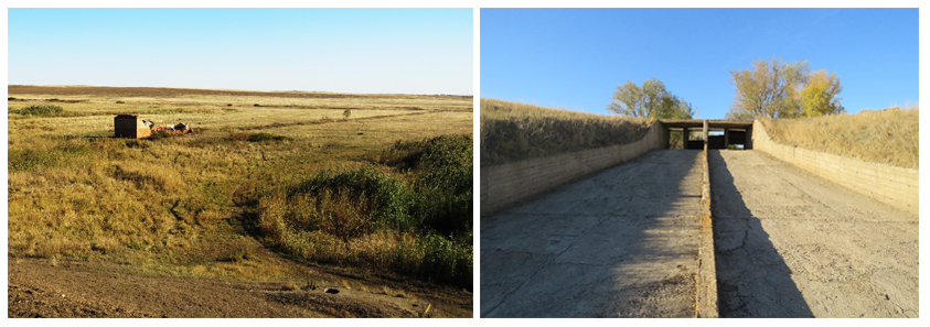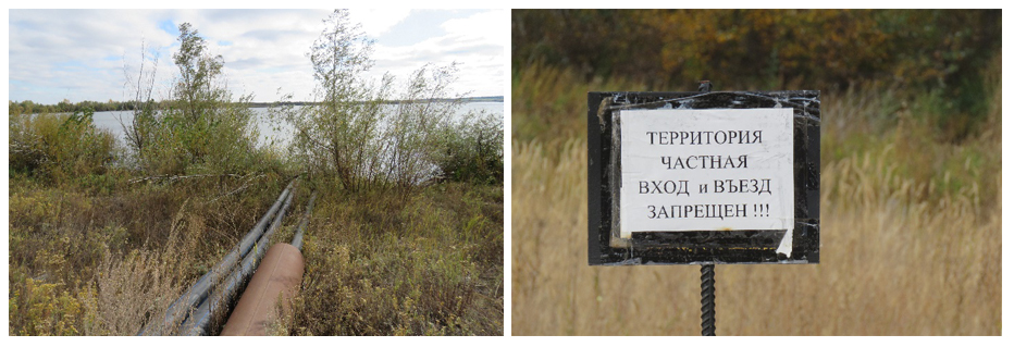 Водохранилище на р. Балабанка 1-я. Иллюстрация состояния водопропускных сооружений (фото слева) и поливной станции (фото справа)