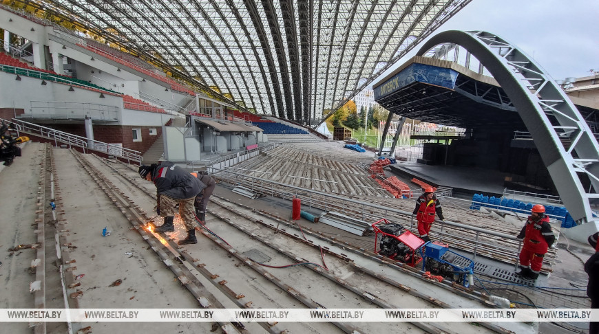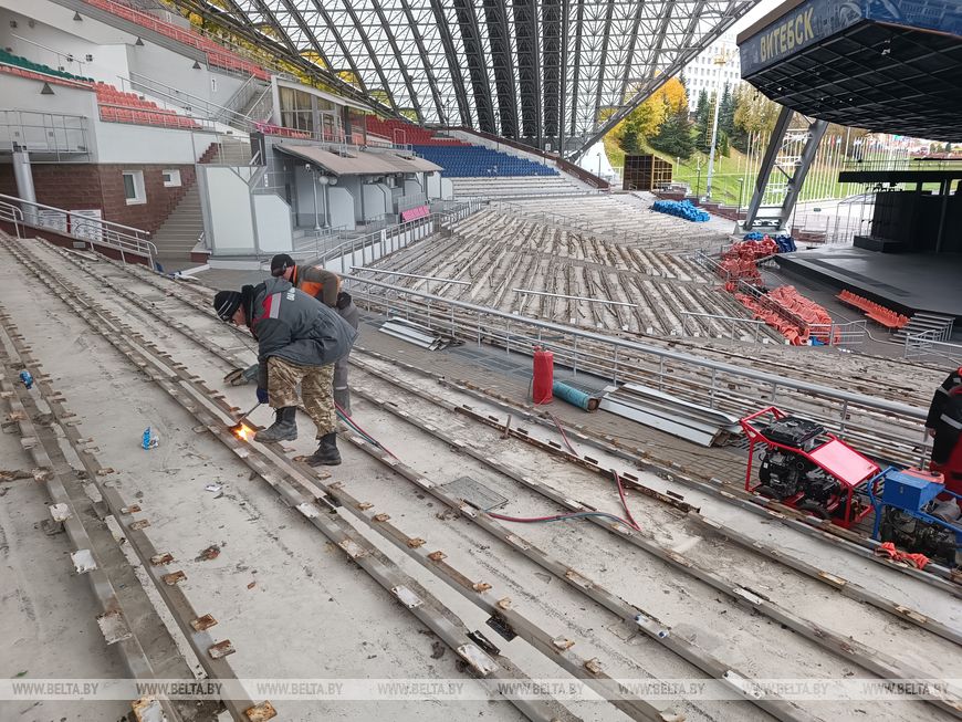 16 октября, Витебск /Алеся Пушнякова - БЕЛТА/. Замена сидений в зрительном зале, светового оборудования, очистка крыши и металлоконструкций - как идет модернизация главной сценической площадки международного фестиваля искусств "Славянский базар в Витебске", журналистам рассказал заведующий филиалом "Летний амфитеатр" Центра культуры "Витебск" Александр Силиванов, передает корреспондент БЕЛТА.