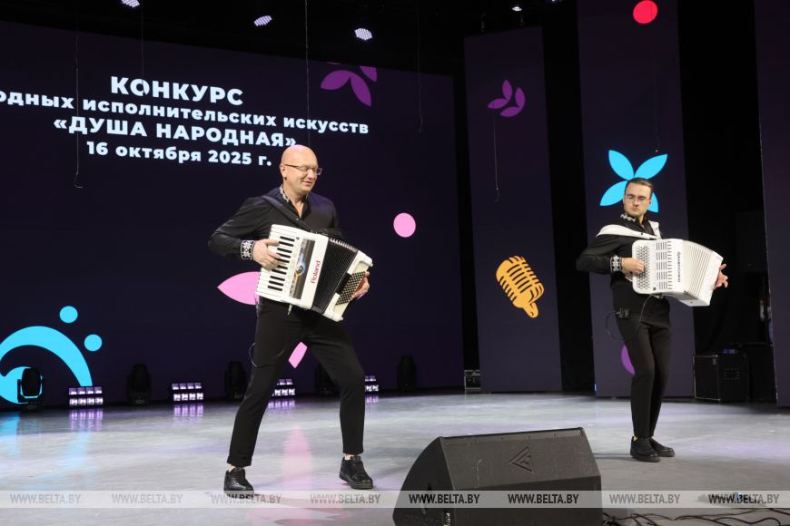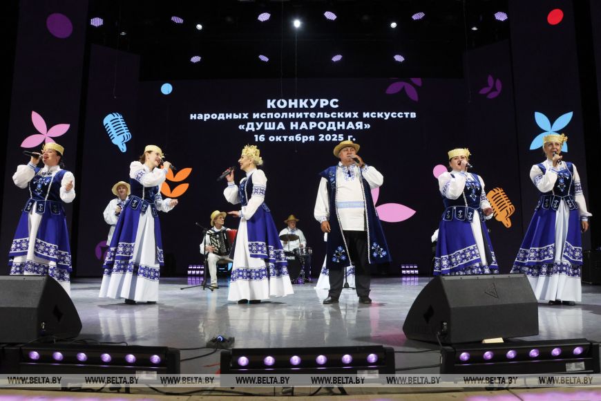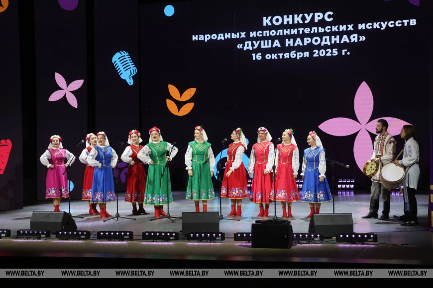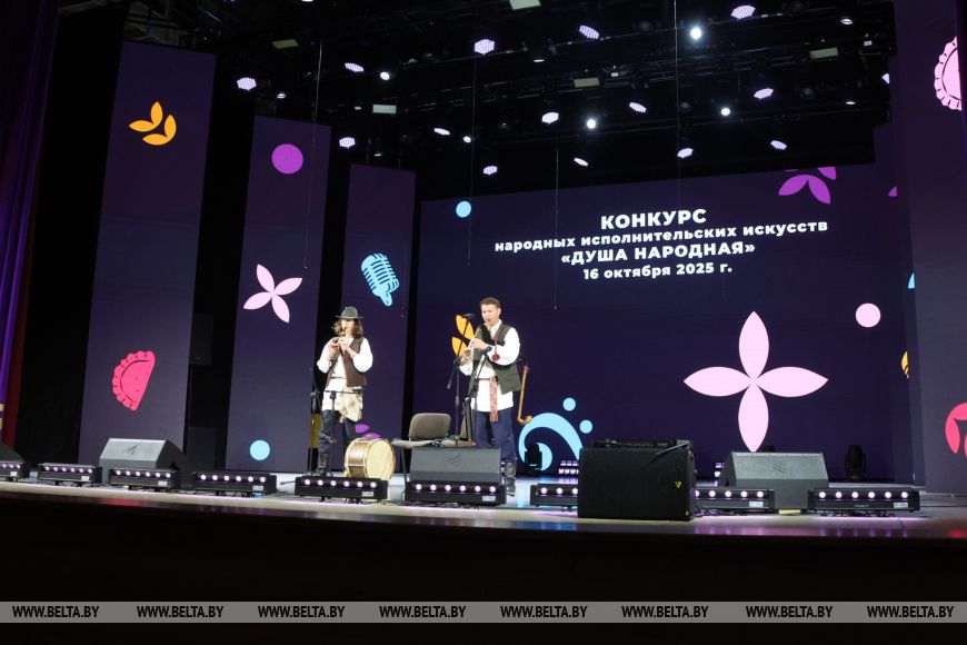 Финал конкурса "Душа народная" проходит в рамках "Душевного фестиваля" в Минском городском дворце культуры. Всего 27 финалистов соревнуются в трех номинациях: "Вокальное творчество. Соло", "Вокальное творчество. Ансамбль", "Инструментальное творчество. Ансамбль".