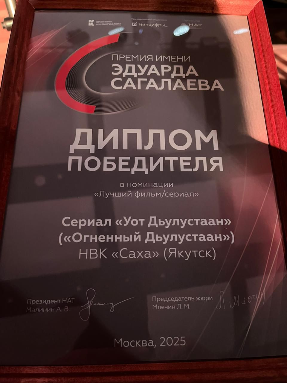 Сериал НВК «Саха» «Уот Дьулустаан» был удостоен премии имени Эдуарда Сагалаева в номинации «Фильм/Сериал». Церемония награждения прошла вчера, 16 октября, в Московском международном доме музыки (ММДМ).