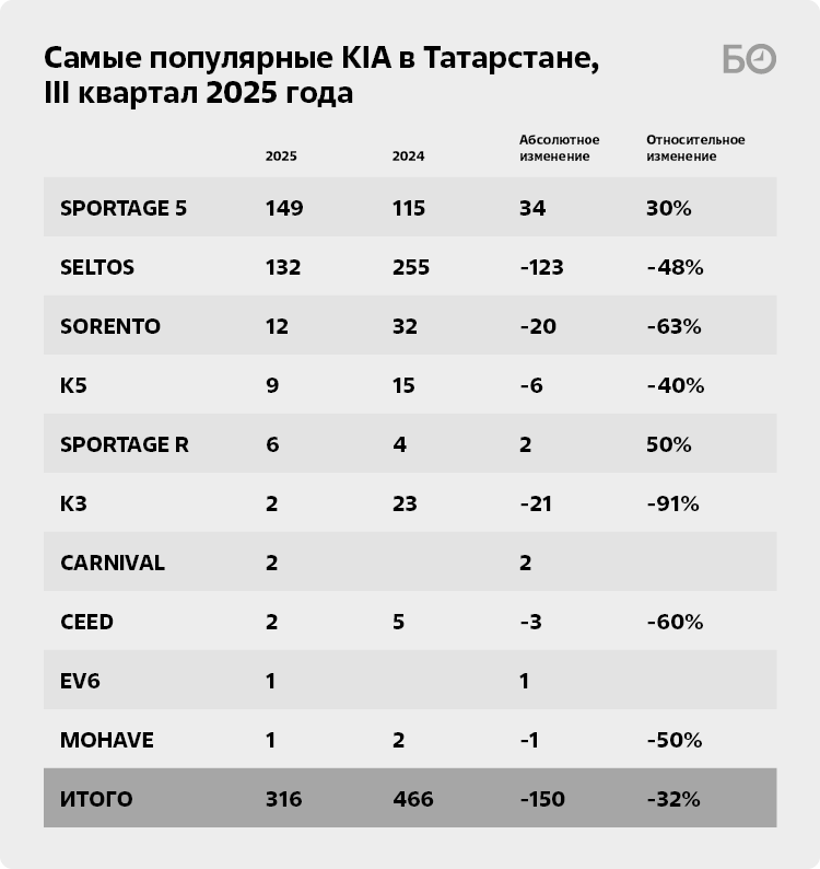 Что касается «коренных корейцев», то продажи Kia сократились на треть с 466 до 316 регистраций, причем 9 из них были произведены еще в 2023 году. «Коренных» из них только 16 автомобилей. Именно столько приехало из Южной Кореи. 189 машин было собрано в Китае, а 111 — в Казахстане.