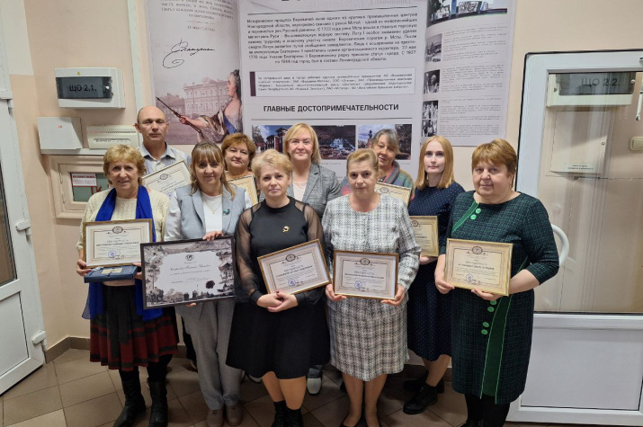 На встрече она вручила педагогам благодарности Русского географического общества и Новгородского областного отделения РГО.