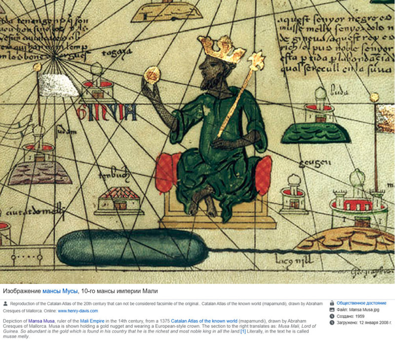 Зато имя императора Мусы стало известно и всему исламскому, и всему европейскому миру. Оно было нанесено на первые мировые карты.