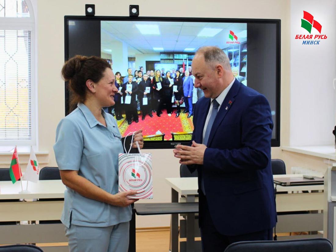 - Председатель Московской районной организации «Белая Русь» Игорь Цыбин встретился с коллективом Минского городского центра медицинской реабилитации детей с психоневрологическими заболеваниями.
