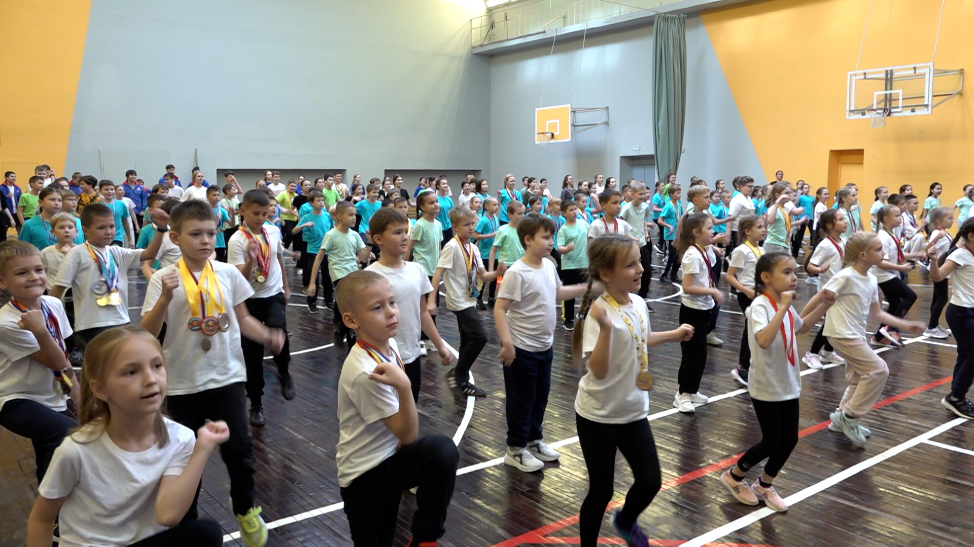 Ольга Курмаева, директор МБОУ «СОШ Nº59» г. Чебоксары: Вместе с ребятами мы решили, что мы не можем пропустить такое грандиозное мероприятие, как сдачи норм ГТО, потому что наши ребята очень активны во многих спортивных мероприятиях. Конечно, ребята очень хотят получить значок, золотой или серебряный, и у некоторых ребят, я не скажу, что у многих, но есть уже у ребят значки, которые они получили за сдачу нормативов ГТО. И, конечно, другие ребята тоже хотят получить этот значок.