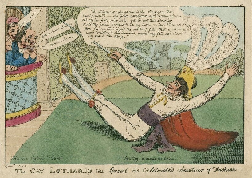 На сцену Коутс вышел в костюме собственного дизайна: развевающемся небесно-голубом плаще с пайетками, красных панталонах, белой муслиновой жилетке, большом галстуке, шляпе с плюмажем и, как обычно, усыпанный драгоценными камнями. Текст он не выучил и импровизировал по ходу действия, а сцены смерти повторял многократно, считая, что с первого раза умер недостаточно убедительно. Зрительный зал гремел от смеха, одни его освистывали, другие ― аплодировали. Так и родилась легенда, а шекспировская трагедия из-за плохой игры превратилась в комедию.