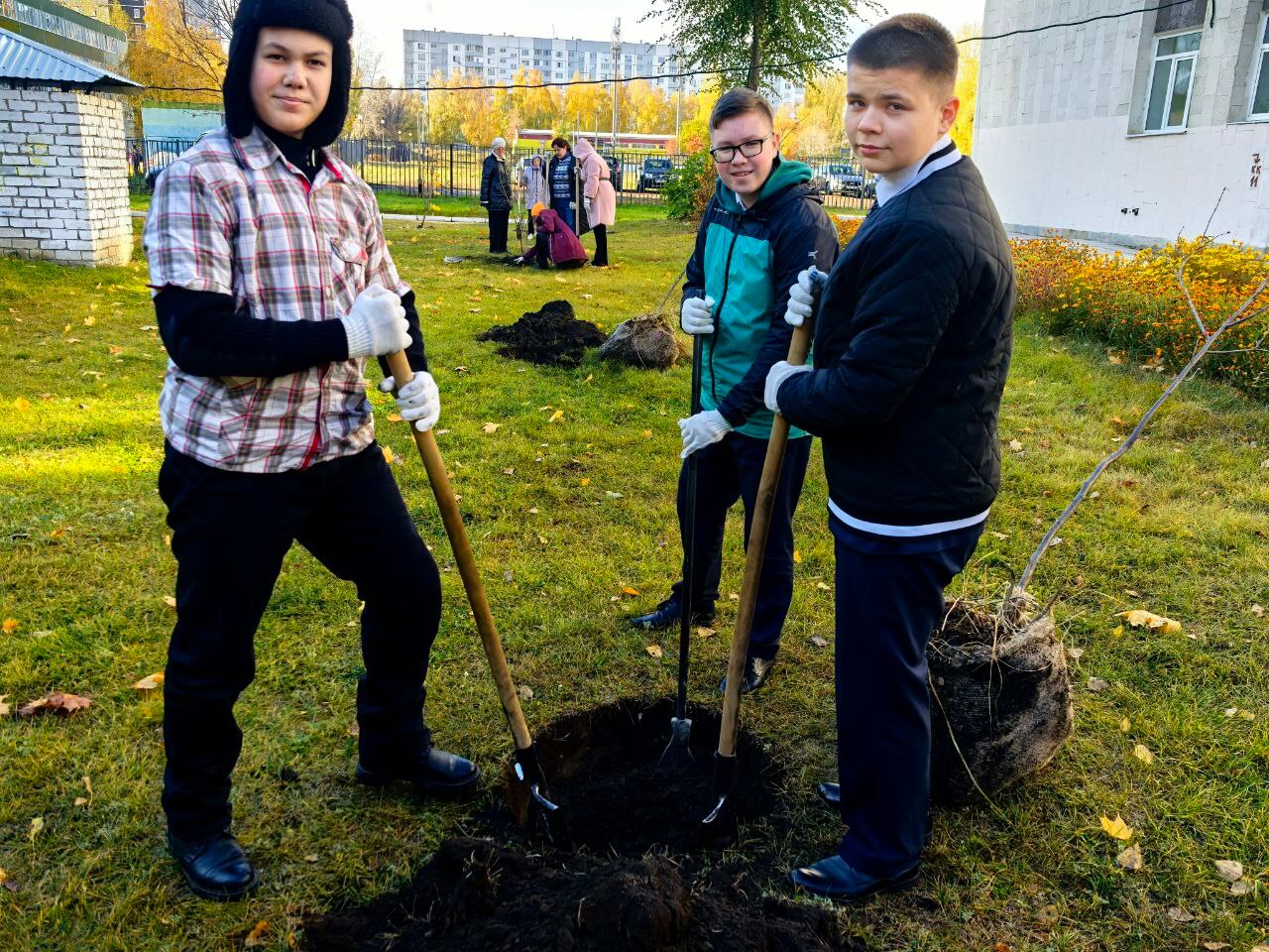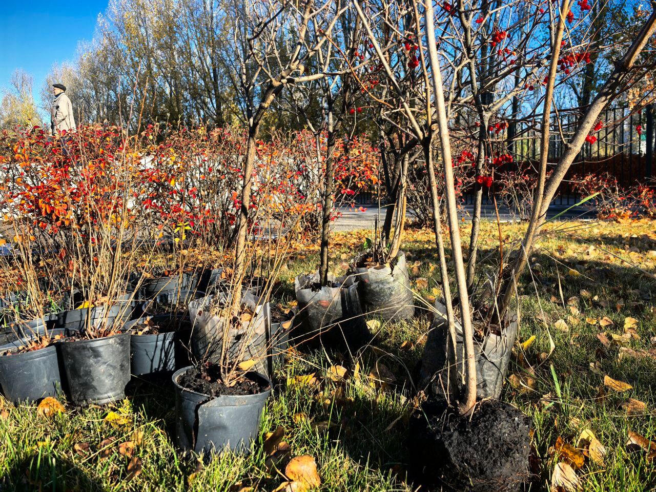 Большая команда энтузиастов высадила у школы искусств пять кустов калины, пять рябин, клён и еще 25 кустов кизильника.