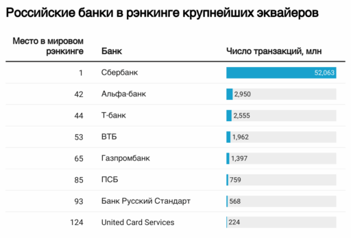 Остальные российские банки оказались ближе к нижней половине ренкинга. Так, Альфа-банк занял 42-ю строчку с 2,9 млрд транзакций, Т-банк — 44-ю с 2,5 млрд.