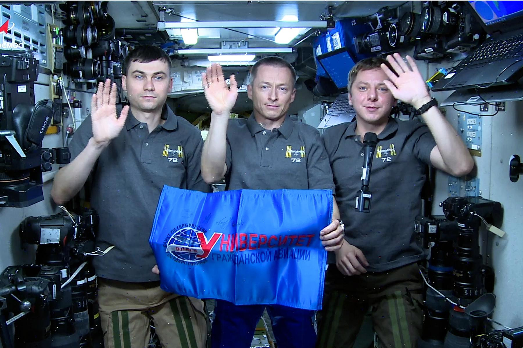 Университет чествовали даже из невесомости! Космонавты Роскосмоса Сергей Рыжиков, Алексей Зубрицкий и Кирилл Песков передали видеопоздравление с 70-летием СПбГУ ГА с борта Международной космической станции.