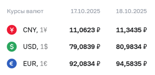 Банк России опубликовал официальные курсы валют на 18 октября 2025 года.