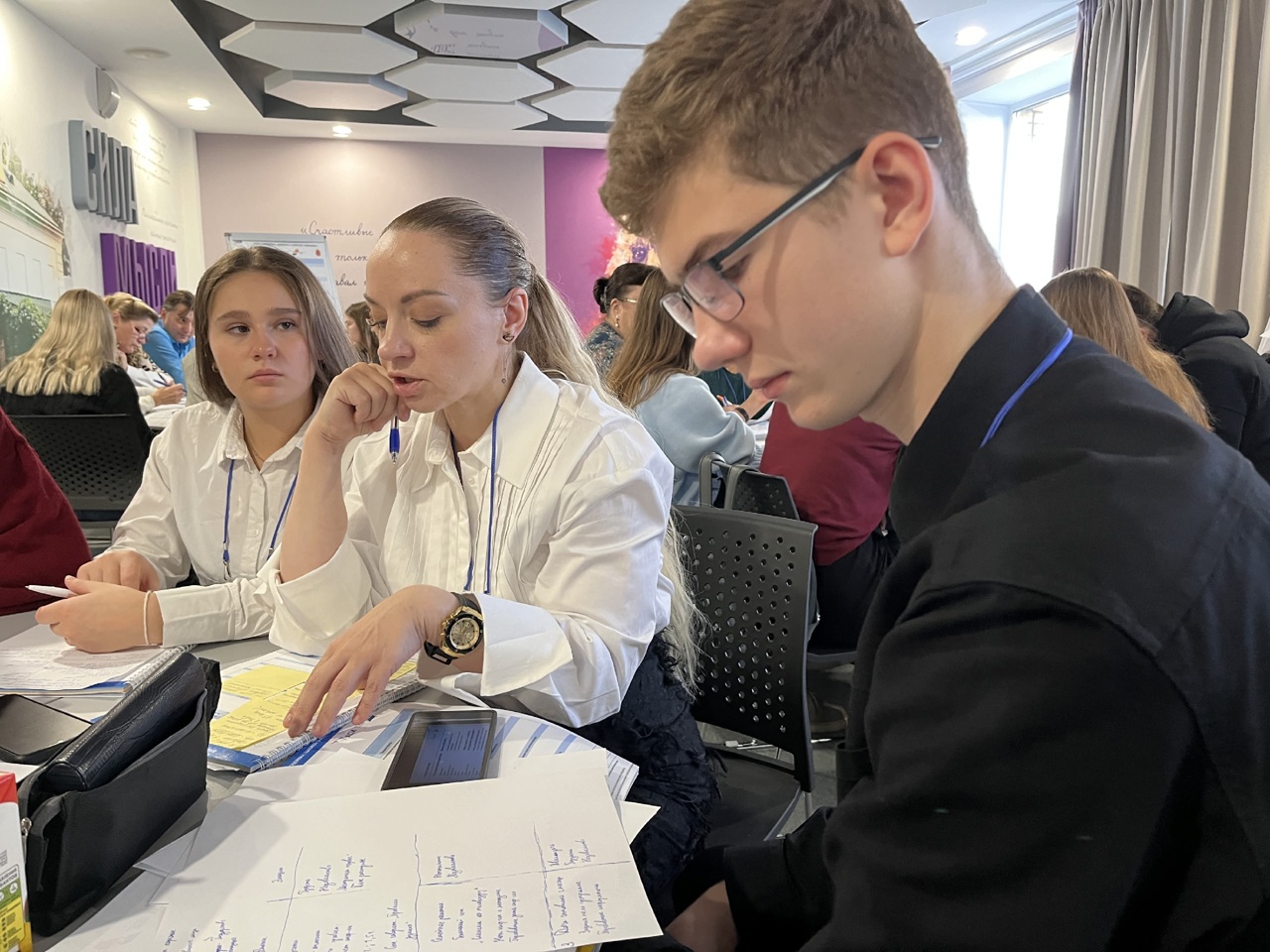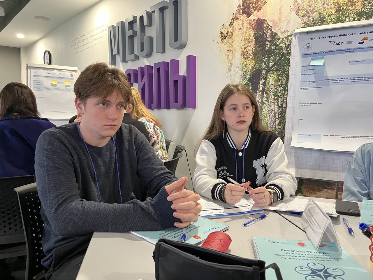 В середине октября школьники стали полноценной командой в рамках IX потока обучения Единой технологии. Четыре дня они совместно со взрослыми командами из Оренбургской, Ленинградской, Мурманской и Астраханской областей, а также Чеченской и Удмуртской Республик изучали теоретические основы: как запускать проекты с нуля, устройство профильных ведомств, основы социальной сферы в России.