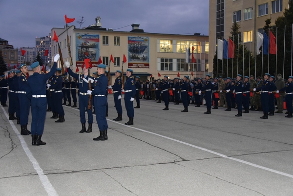Перед гостями и участниками мероприятия выступила рота почетного караула Рязанского гвардейского высшего воздушно-десантного ордена Суворова дважды Краснознаменного командного училища имени генерала армии В.Ф. Маргелова.