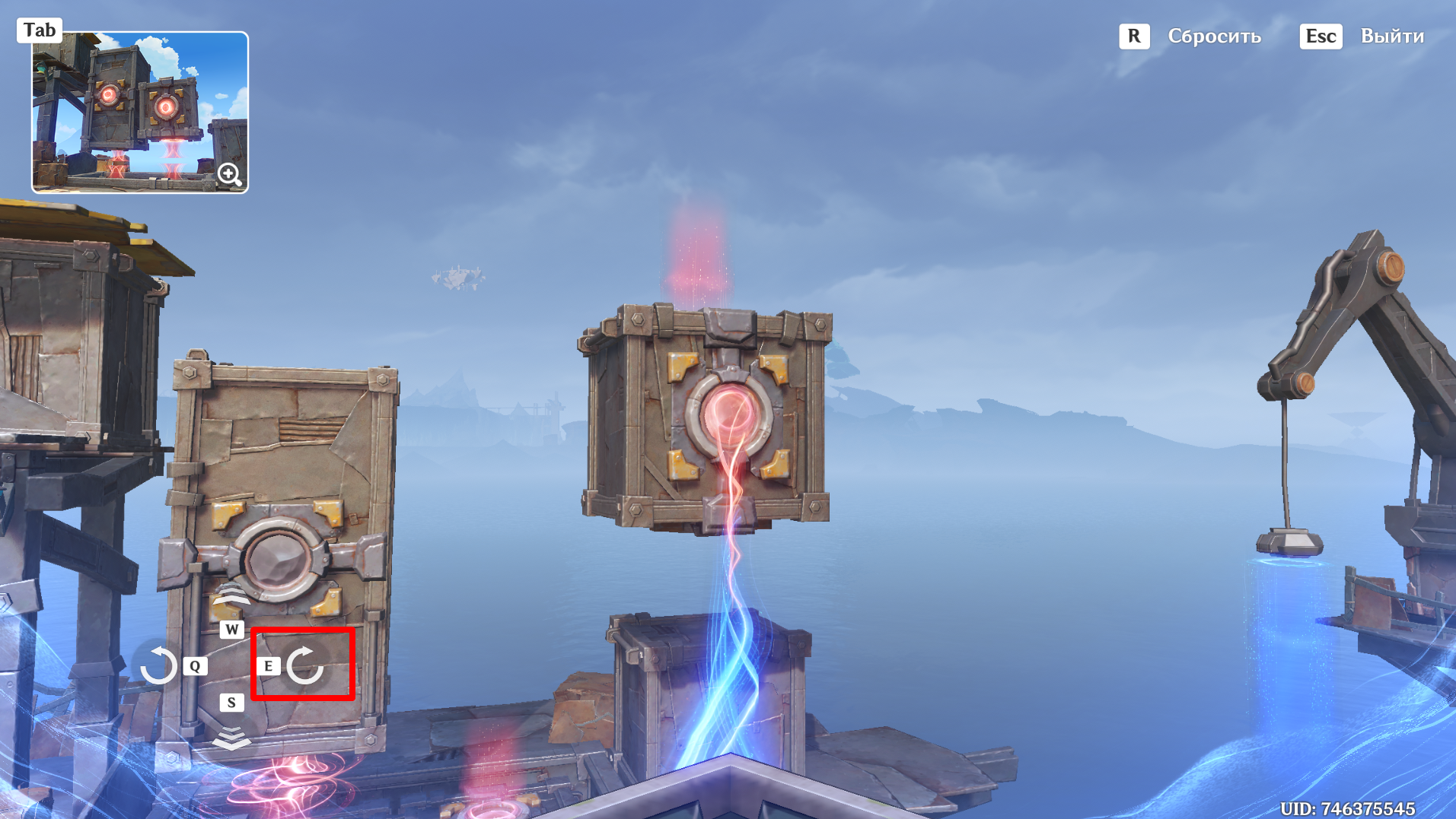 Поверните ящик один раз (с помощью кнопки Е).
